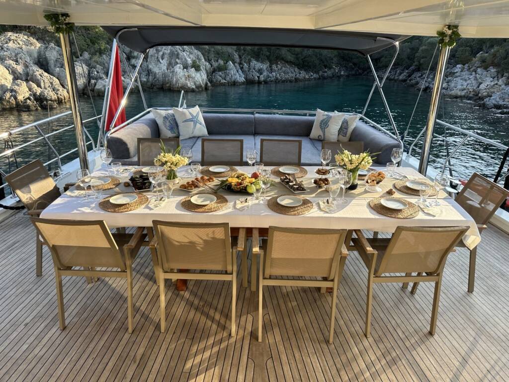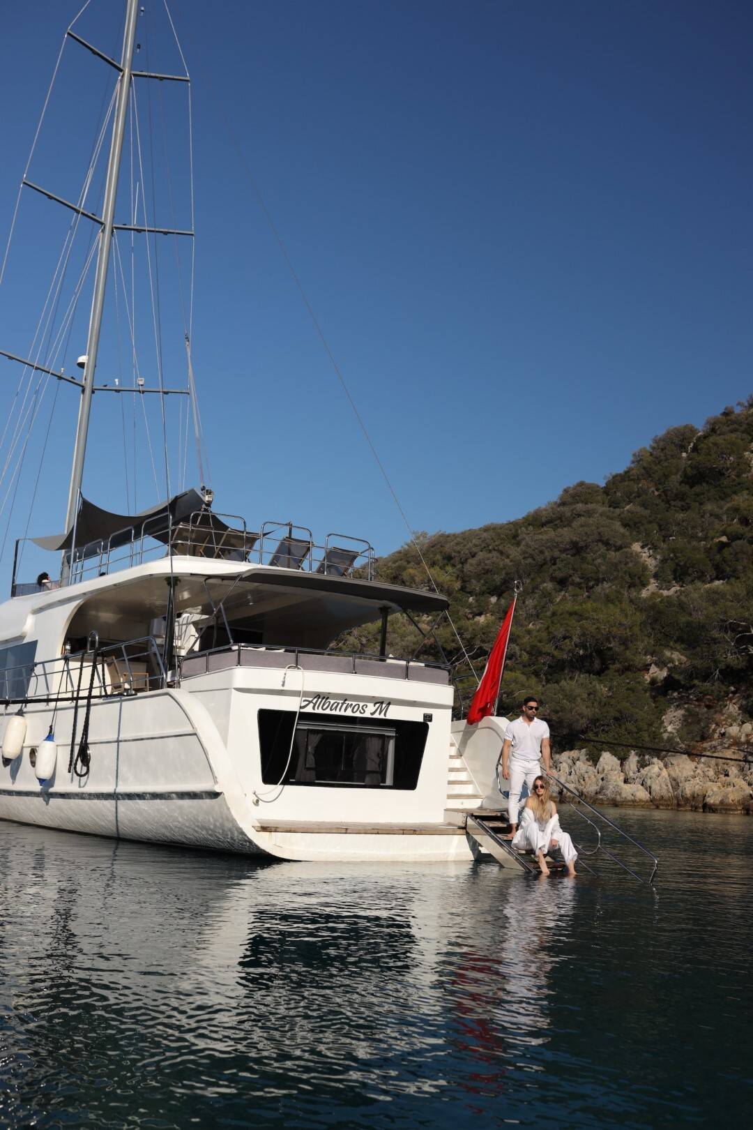 Diese Yacht Albatros M (Gulet - Baujahr 2021) liegt in der Fethiye port, Aegean, Türkei. Sie verfügt über 5 Kabinen, bietet Ihnen Platz für 10 Personen und hat 5 WC.