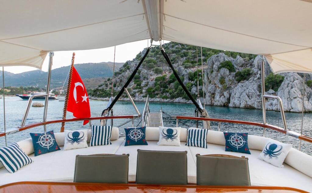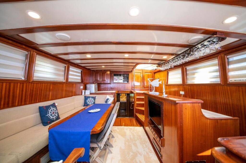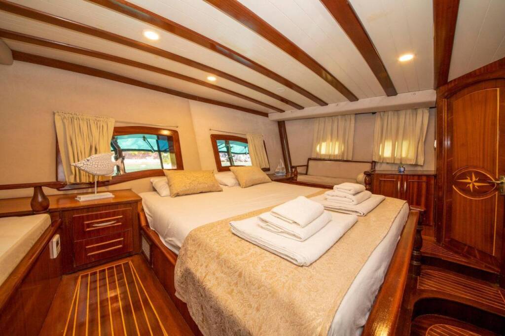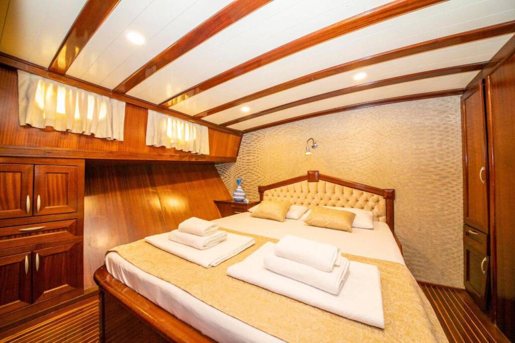 Diese Yacht Santa Maria* (Gulet - Baujahr 2008) liegt in der Marmaris, Netsel Marina, Aegean, Türkei. Sie verfügt über 5 + 2 Kabinen, bietet Ihnen Platz für 10 + 4 Personen und hat 5 WC.