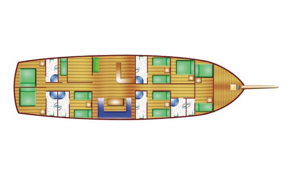 Diese Yacht Serenad (Gulet - Baujahr 2003) liegt in der Bodrum Harbour, Aegean, Türkei. Sie verfügt über 6 + 2 Kabinen, bietet Ihnen Platz für 12 + 4 Personen und hat 6 WC.