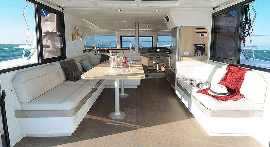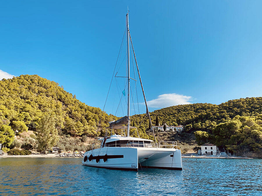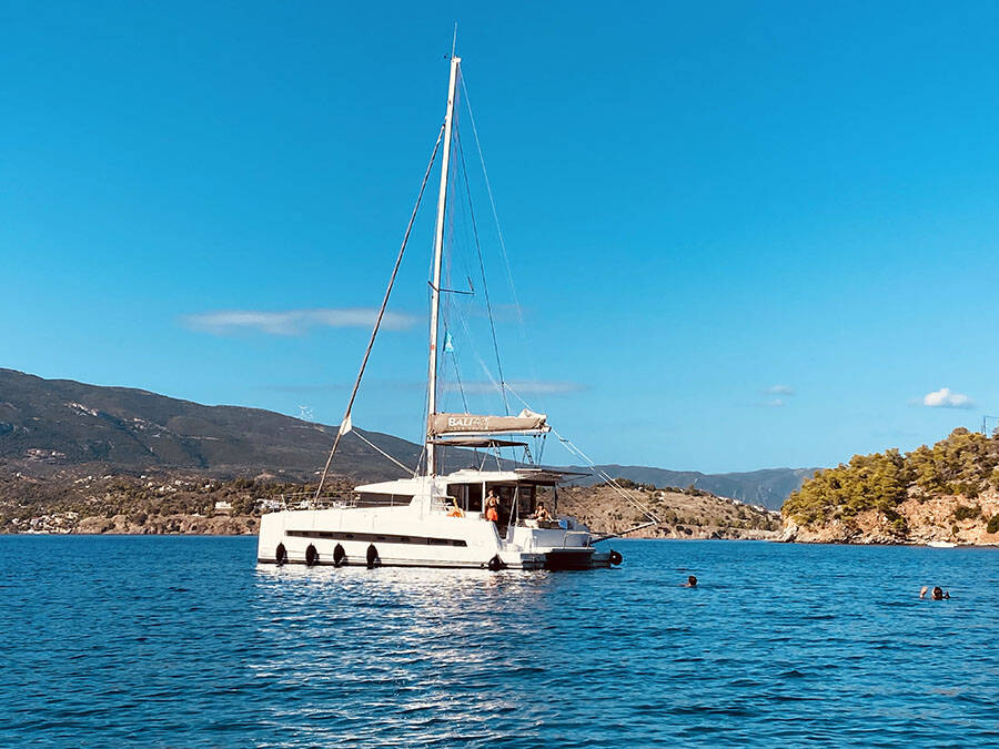 Diese Yacht Bali 4.1 (Katamaran - Baujahr 2020) liegt in der Preveza Main Port, Ionisches Meer, Griechenland . Sie verfügt über 4 + 2 Kabinen, bietet Ihnen Platz für 11 Personen und hat 4 WC.