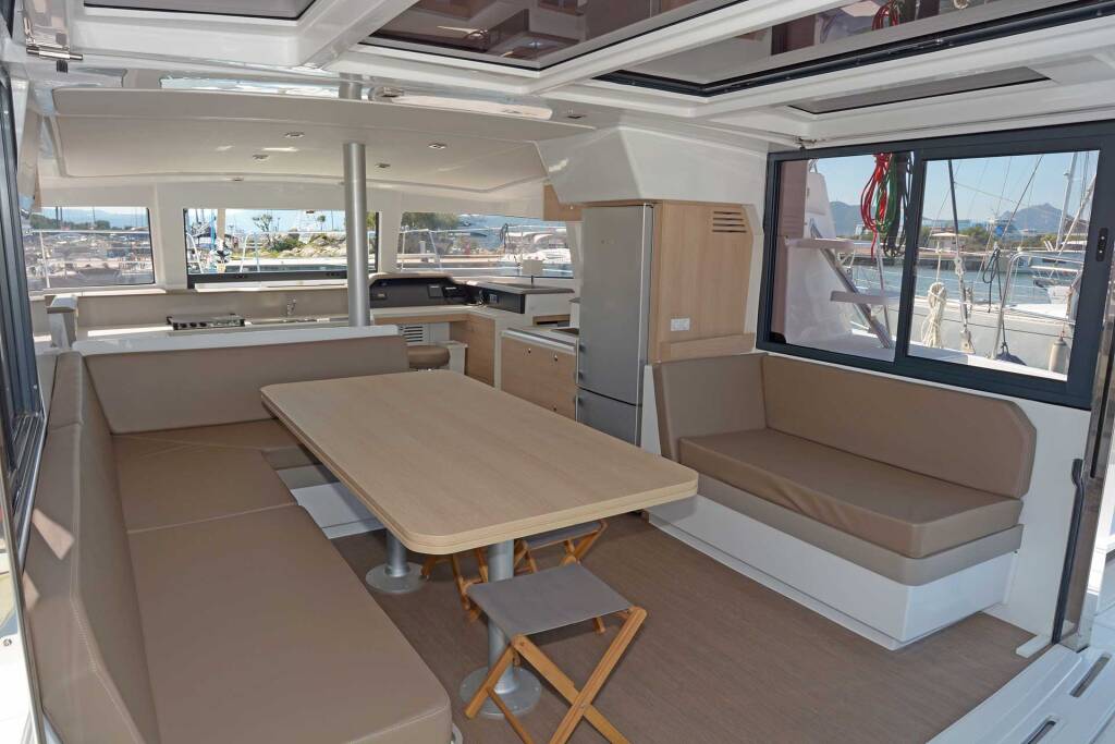 Diese Yacht Bali 4.1 (Katamaran - Baujahr 2019) liegt in der Marina di Portisco, Sardinien, Italien. Sie verfügt über 4 + 2 Kabinen, bietet Ihnen Platz für 8 + 2 Personen und hat 4 WC.