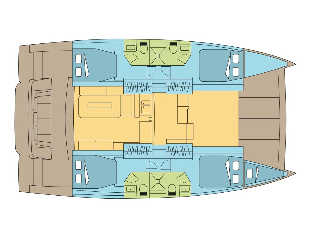 Diese Yacht Bali 4.2 (Katamaran - Baujahr 2021) liegt in der BVI, Hodge's Creek Marina, Britische Jungferninseln (BVI), Britische Jungferninseln (BVI). Sie verfügt über 4 + 1 Kabinen, bietet Ihnen Platz für 9 Personen und hat 4 WC.