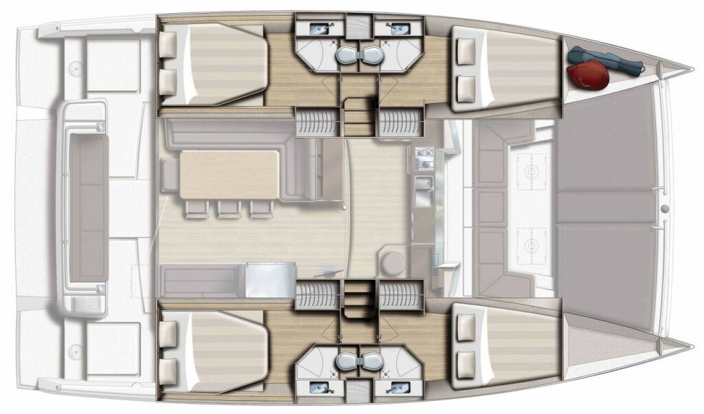 Diese Yacht Bali 4.3 (Katamaran - Baujahr 2020) liegt in der Seychelles, Eden Island Marina, Mahé, Seychellen. Sie verfügt über 4 + 2 Kabinen, bietet Ihnen Platz für 10 Personen und hat 5 WC.