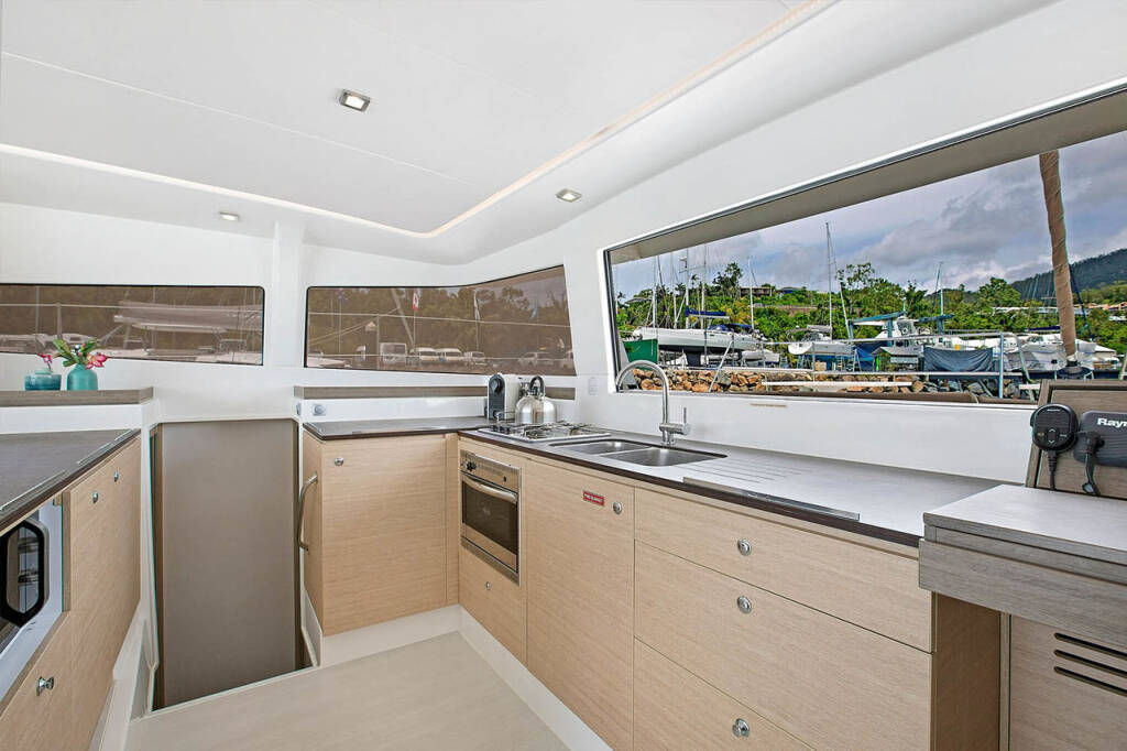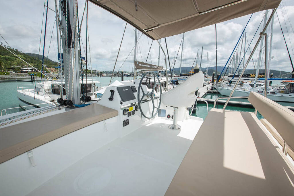 Diese Yacht Bali 4.3 (Katamaran - Baujahr 2017) liegt in der Whitsundays, Airlie Beach, Coral Sea Marina, Whitsunday Islands, Australien und Ozeanien. Sie verfügt über 4 Kabinen, bietet Ihnen Platz für 8 Personen und hat 4 WC.