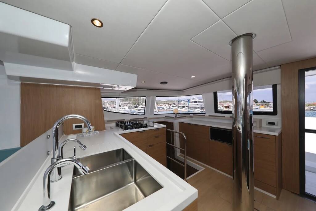 Diese Yacht Bali 4.6 (Katamaran - Baujahr 2024) liegt in der Trogir, Yachtclub Seget (Marina Baotić), Split & Umgebung, Kroatien. Sie verfügt über 4 + 1 Kabinen, bietet Ihnen Platz für 8 + 1 Personen und hat 3 WC.