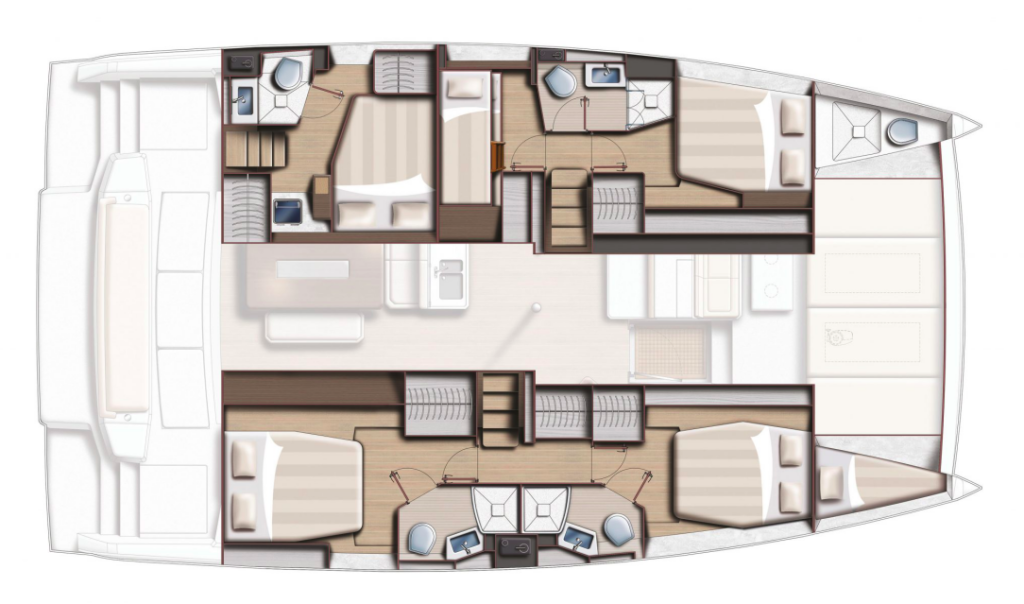 Diese Yacht Bali 4.6 (Katamaran - Baujahr 2022) liegt in der Castellammare, Marina di Stabia, Campania, Italien. Sie verfügt über 5 + 1 Kabinen, bietet Ihnen Platz für 10 + 1 + 1 Personen und hat 4 + 1 WC.