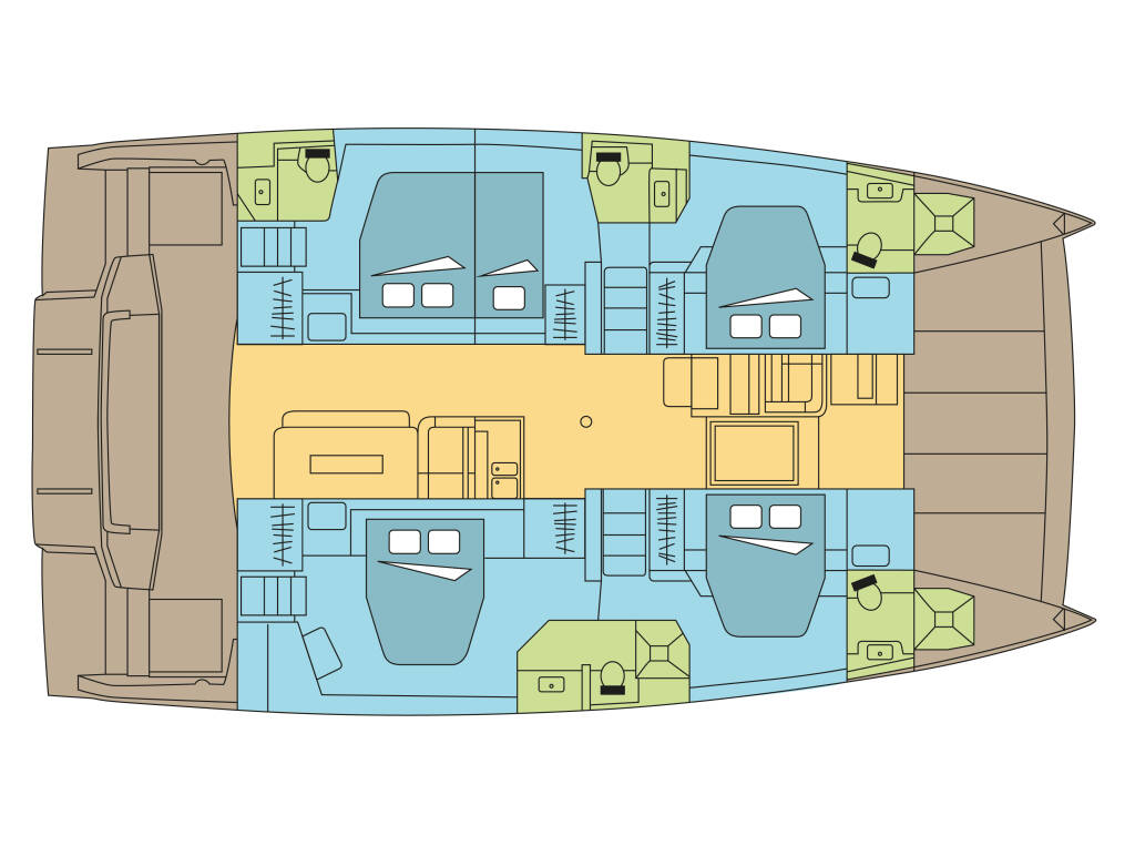 Diese Yacht Bali 4.8 (Katamaran - Baujahr 2020) liegt in der Nassau, Palm Cay Marina, New Providence, Bahamas. Sie verfügt über 5 Kabinen, bietet Ihnen Platz für 10 Personen und hat 5 WC.