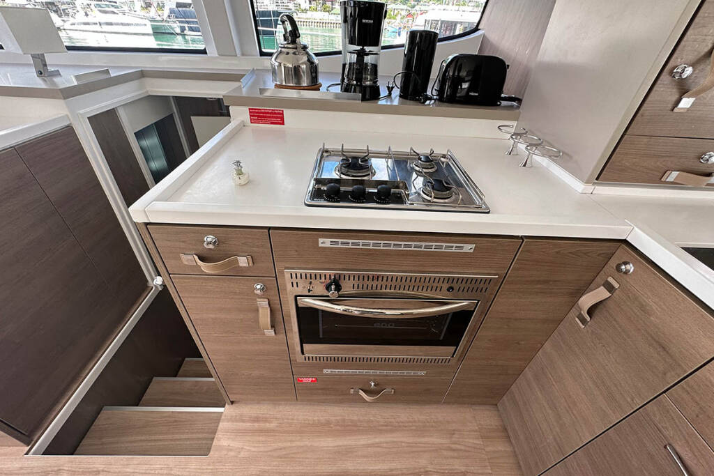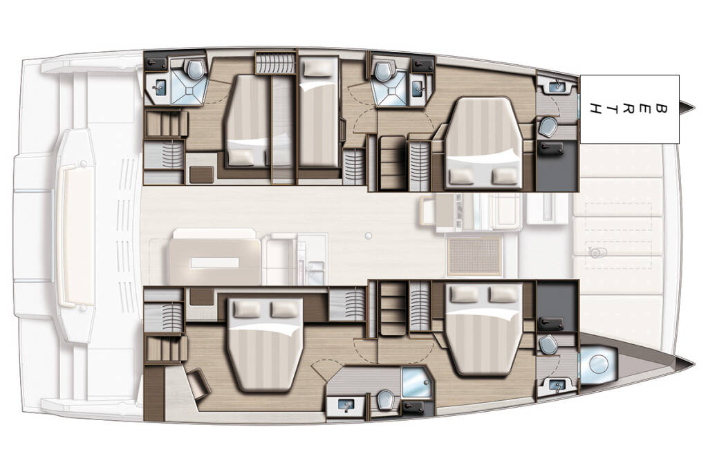 Diese Yacht Bali 4.8 (Katamaran - Baujahr 2023) liegt in der Seychelles, Eden Island Marina, Mahé, Seychellen. Sie verfügt über 5 + 1 Kabinen, bietet Ihnen Platz für 11 Personen und hat 5 WC.