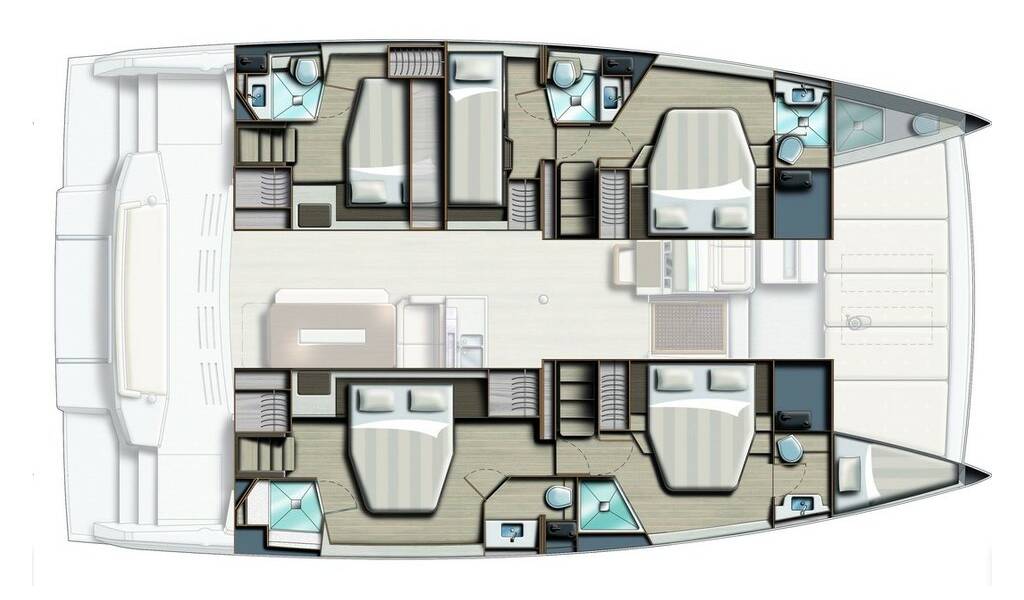 Diese Yacht Bali 4.8 (Katamaran - Baujahr 2022) liegt in der Lavrion, main port, Athens area/Saronic/Peloponese, Griechenland . Sie verfügt über 5 + 2 Kabinen, bietet Ihnen Platz für 10 + 2 Personen und hat 5 WC.