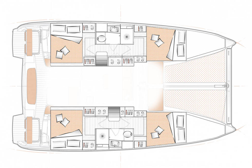 Diese Yacht Excess 11 (Katamaran - Baujahr 2023) liegt in der Palma de Mallorca, Marina Naviera Balear, Balearische Inseln, Spanien. Sie verfügt über 4 + 2 Kabinen, bietet Ihnen Platz für 10 Personen und hat 2 WC.