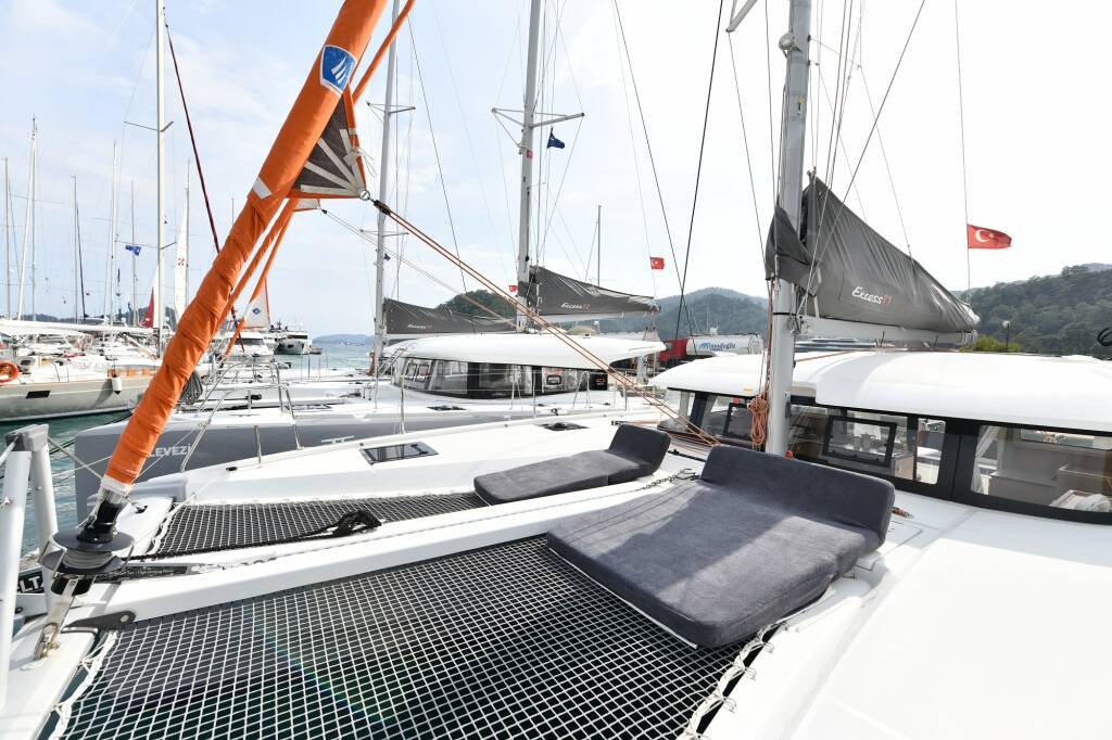 Diese Yacht Excess 11 (Katamaran - Baujahr 2022) liegt in der Fethiye, Lykia Yacht Club, Aegean, Türkei. Sie verfügt über 4 + 2 Kabinen, bietet Ihnen Platz für 10 Personen und hat 2 + 1 WC.