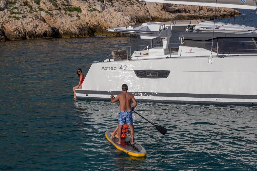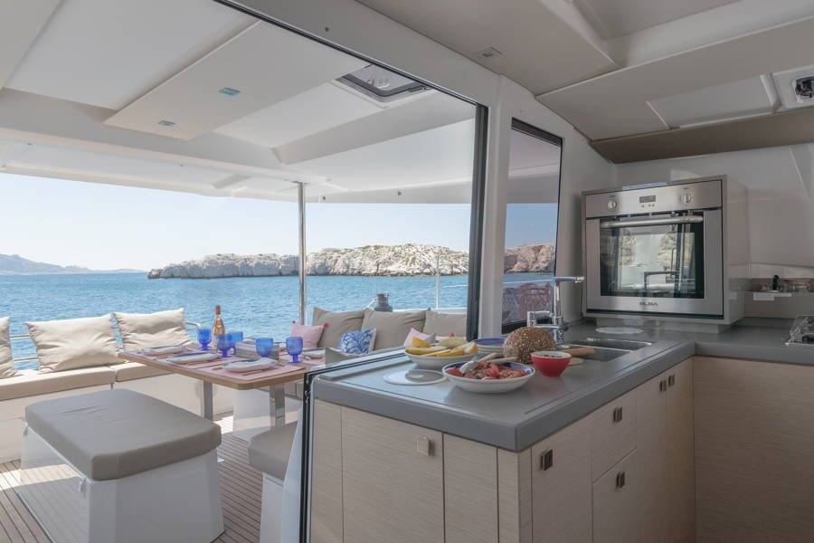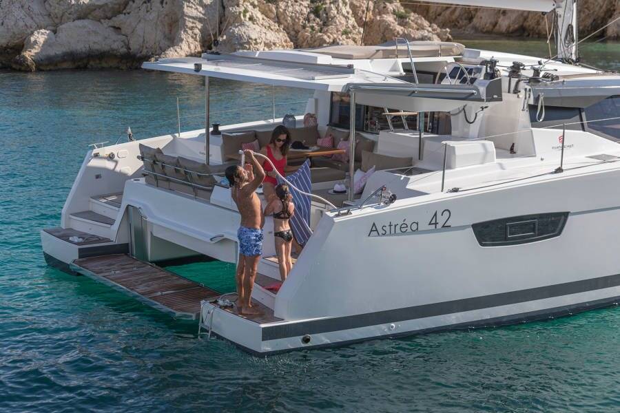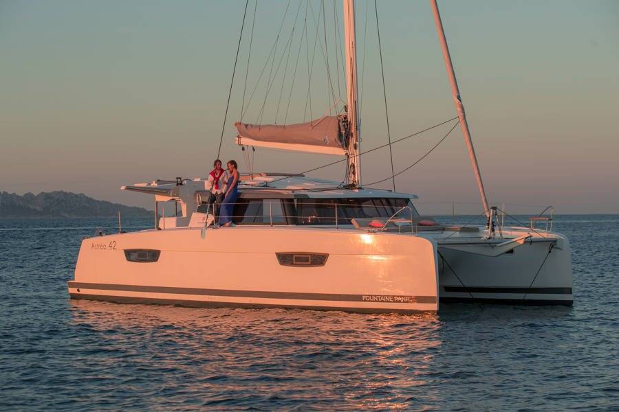Diese Yacht Fountaine Pajot Astrea 42 (Katamaran - Baujahr 2024) liegt in der Marmaris, Joya Del Mar Marina, Aegean, Türkei. Sie verfügt über 4 + 1 Kabinen, bietet Ihnen Platz für 8 Personen und hat 4 + 1 WC.