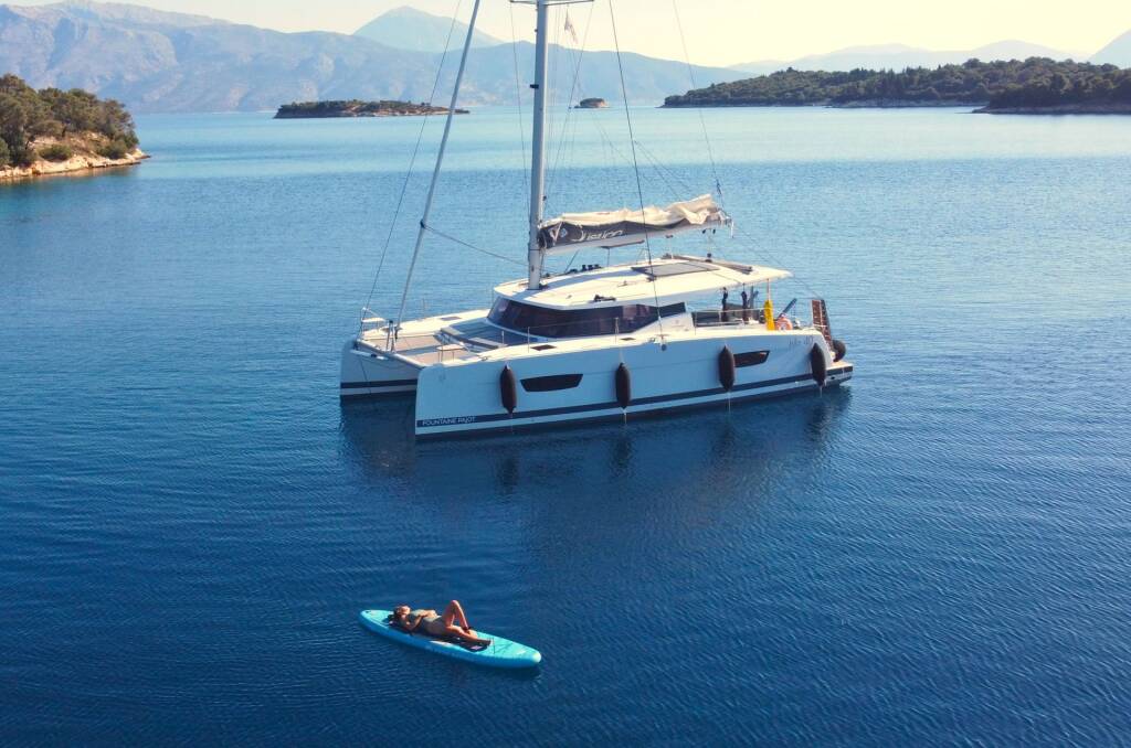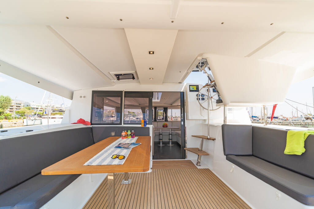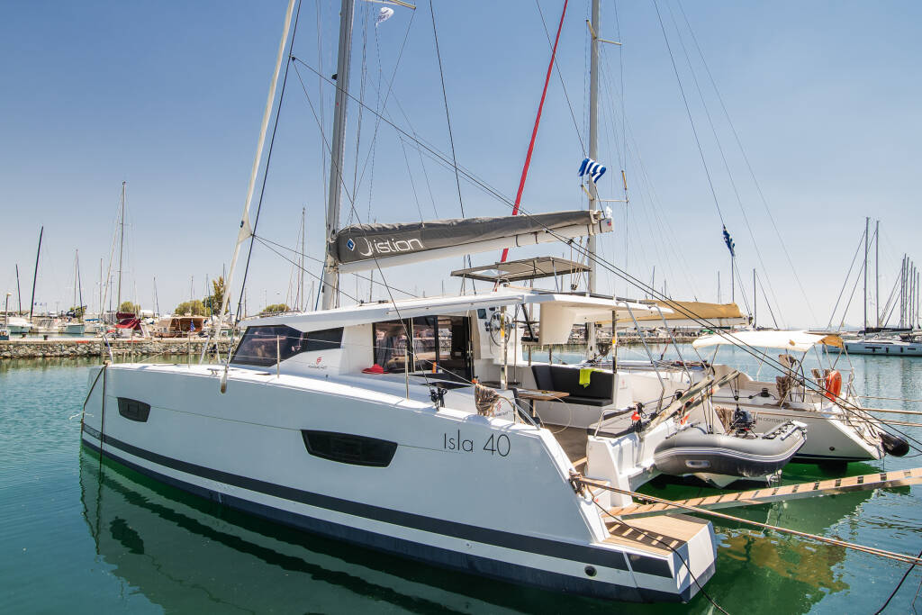 Diese Yacht Fountaine Pajot Isla 40 (Katamaran - Baujahr 2022) liegt in der Rhodes New Marina, Dodekanes, Griechenland . Sie verfügt über 4 + 1 Kabinen, bietet Ihnen Platz für 11 Personen und hat 4 WC.