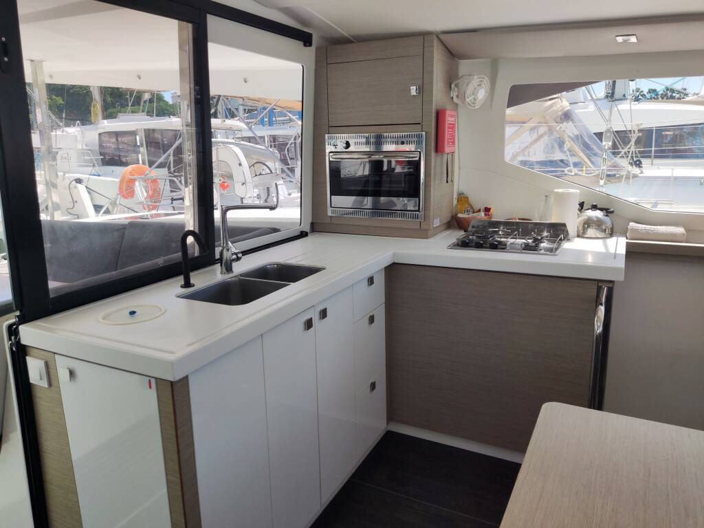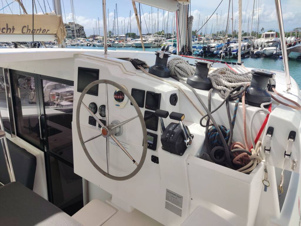 Diese Yacht Fountaine Pajot Lucia 40 (Katamaran - Baujahr 2020) liegt in der Guadeloupe, La Marina Bas du Fort, Guadeloupe, Karibik. Sie verfügt über 4 Kabinen, bietet Ihnen Platz für 10 Personen und hat 4 WC.