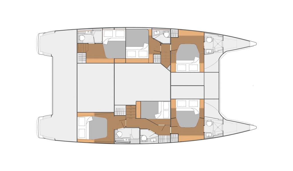 Diese Yacht Fountaine Pajot Saba 50 (Katamaran - Baujahr 2019) liegt in der Seychelles, Eden Island Marina, Mahé, Seychellen. Sie verfügt über 5 + 1 Kabinen, bietet Ihnen Platz für 10 + 2 Personen und hat 6 WC.