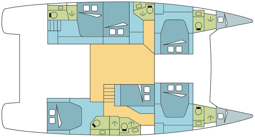 Diese Yacht Fountaine Pajot Saba 50 (Katamaran - Baujahr 2019) liegt in der Grenada, Port Louis Marina, Grenada, Karibik. Sie verfügt über 6 + 2 Kabinen, bietet Ihnen Platz für 14 Personen und hat 6 WC.