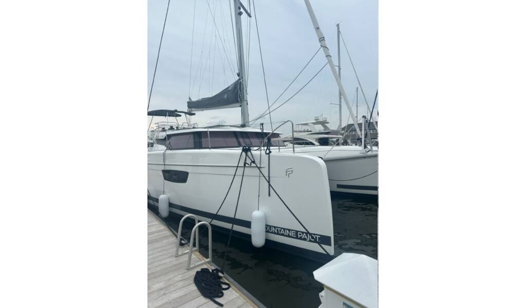 Diese Yacht Fountaine Pajot Tanna 47 (Katamaran - Baujahr 2023) liegt in der Annapolis, Chesapeake Bay, Chesapeake Bay, USA. Sie verfügt über 5 Kabinen, bietet Ihnen Platz für 10 Personen und hat 5 WC.