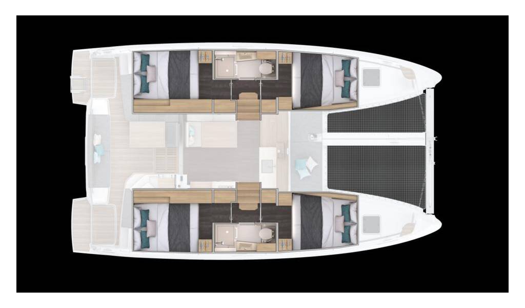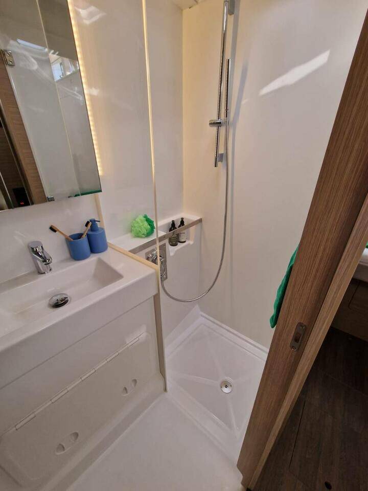 Diese Yacht Lagoon 38 (Katamaran - Baujahr 2025) liegt in der Guadeloupe, La Marina Bas du Fort, Guadeloupe, Karibik. Sie verfügt über 4 + 2 Kabinen, bietet Ihnen Platz für 10 Personen und hat 2 WC.