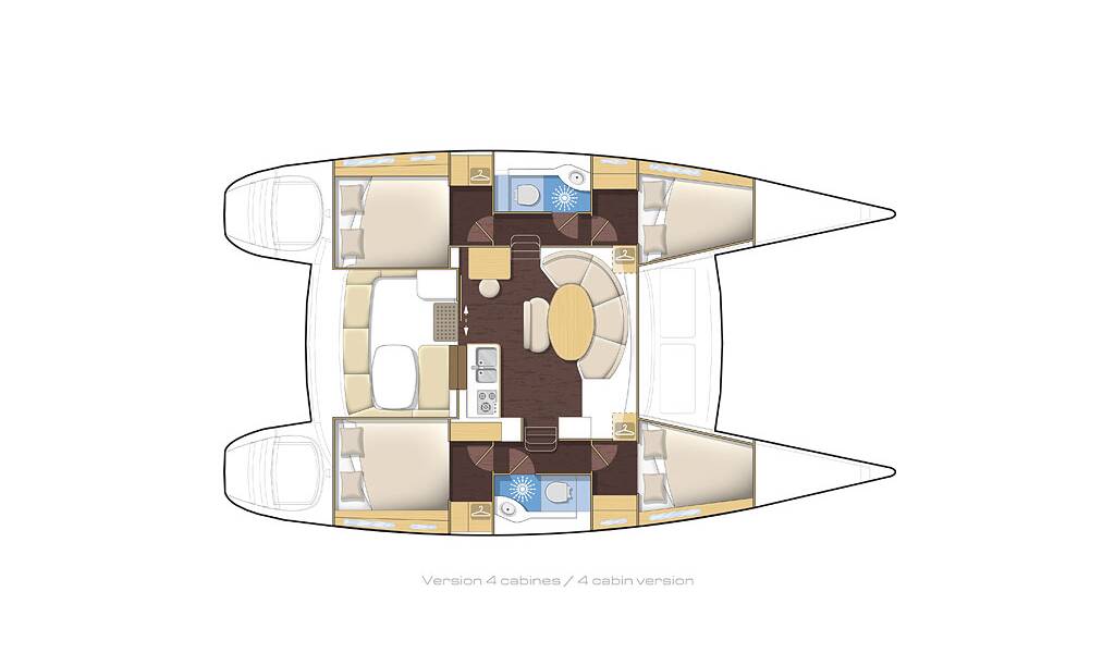 Diese Yacht Lagoon 380 (Katamaran - Baujahr 2019) liegt in der Martinique, Le Marin, Martinique, Karibik. Sie verfügt über 4 Kabinen, bietet Ihnen Platz für 10 Personen und hat 2 WC.