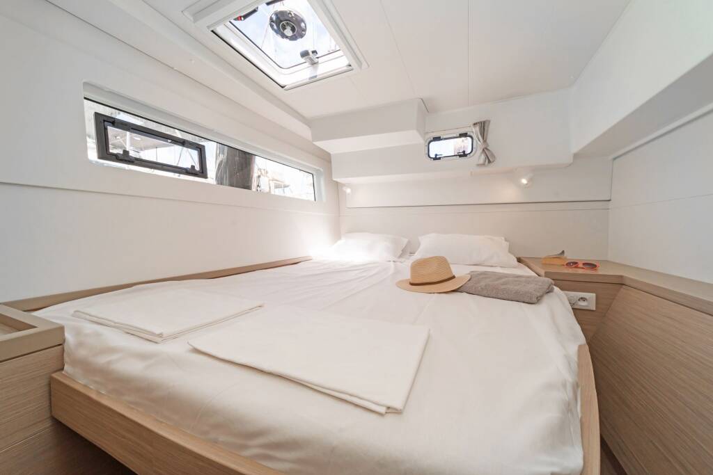 Diese Yacht Lagoon 40 (Katamaran - Baujahr 2023) liegt in der Rhodes New Marina, Dodekanes, Griechenland . Sie verfügt über 4 + 2 Kabinen, bietet Ihnen Platz für 12 Personen und hat 4 + 1 WC.