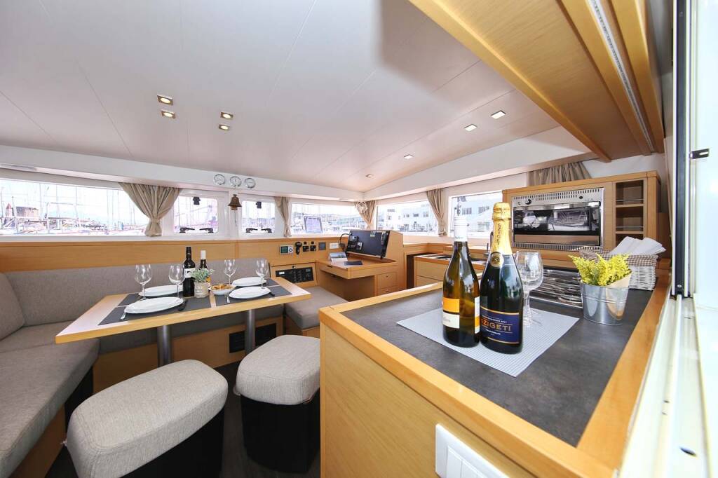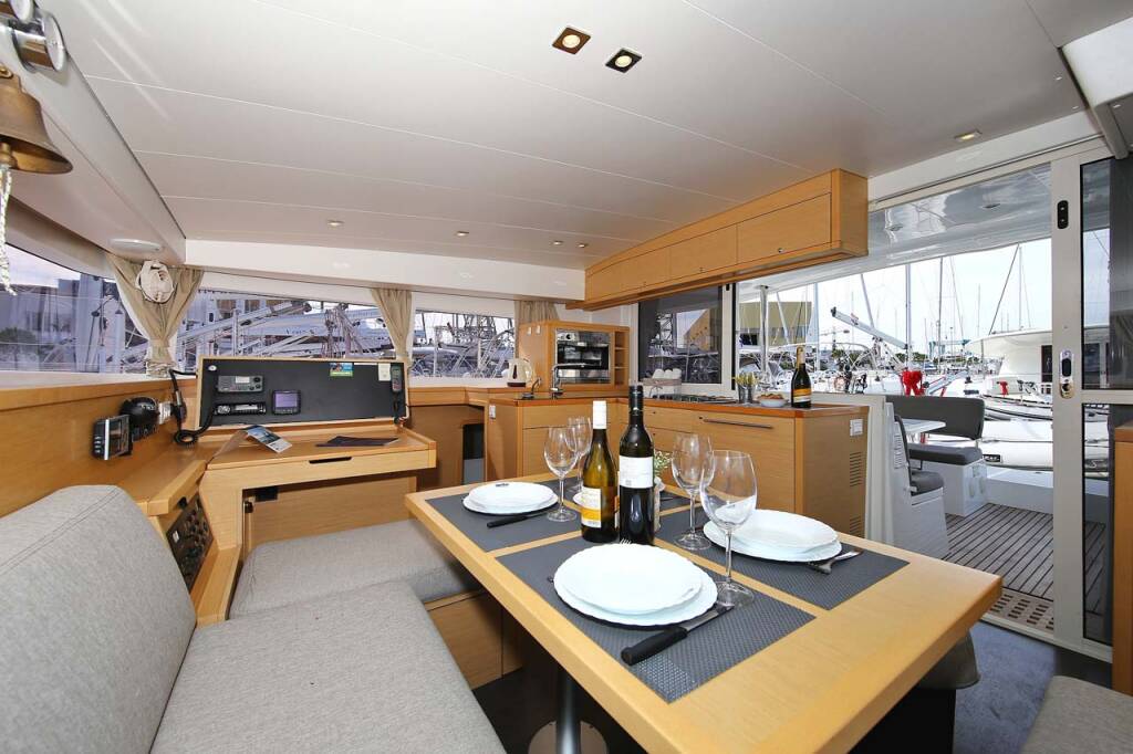 Diese Yacht Lagoon 400 S2 (Katamaran - Baujahr 2014) liegt in der ACI Marina Trogir, Split & Umgebung, Kroatien. Sie verfügt über 4 + 2 Kabinen, bietet Ihnen Platz für 12 Personen und hat 2 WC.