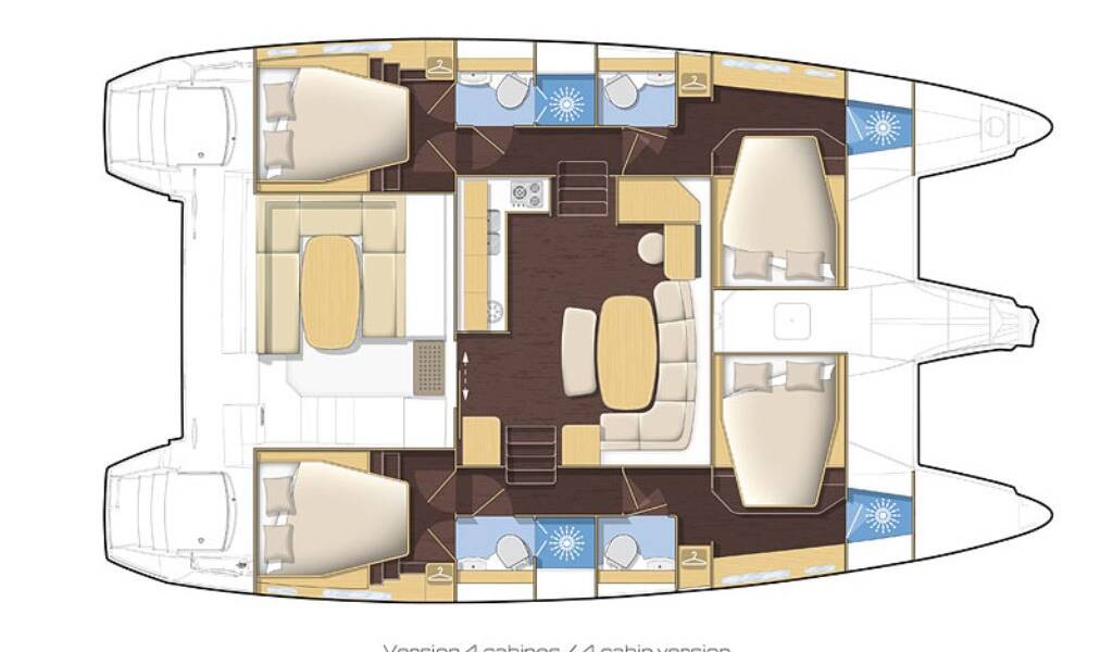 Diese Yacht Lagoon 421 (Katamaran - Baujahr 2011) liegt in der Bodrum/Turgutreis/D-Marin, Aegean, Türkei. Sie verfügt über 4 Kabinen, bietet Ihnen Platz für 10 Personen und hat 4 WC.