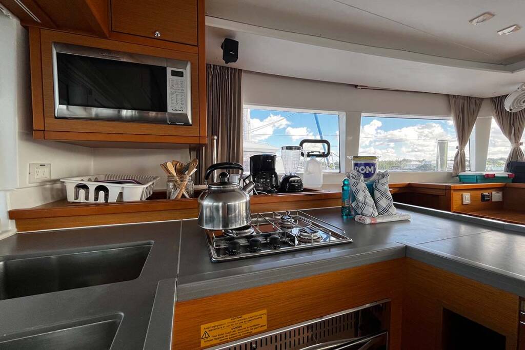 Diese Yacht Lagoon 450 F (Katamaran - Baujahr 2018) liegt in der Marsh Harbour, Conch Inn Marina, Abaco Islands, Bahamas, Bahamas. Sie verfügt über 4 + 2 Kabinen, bietet Ihnen Platz für 12 Personen und hat 4 WC.