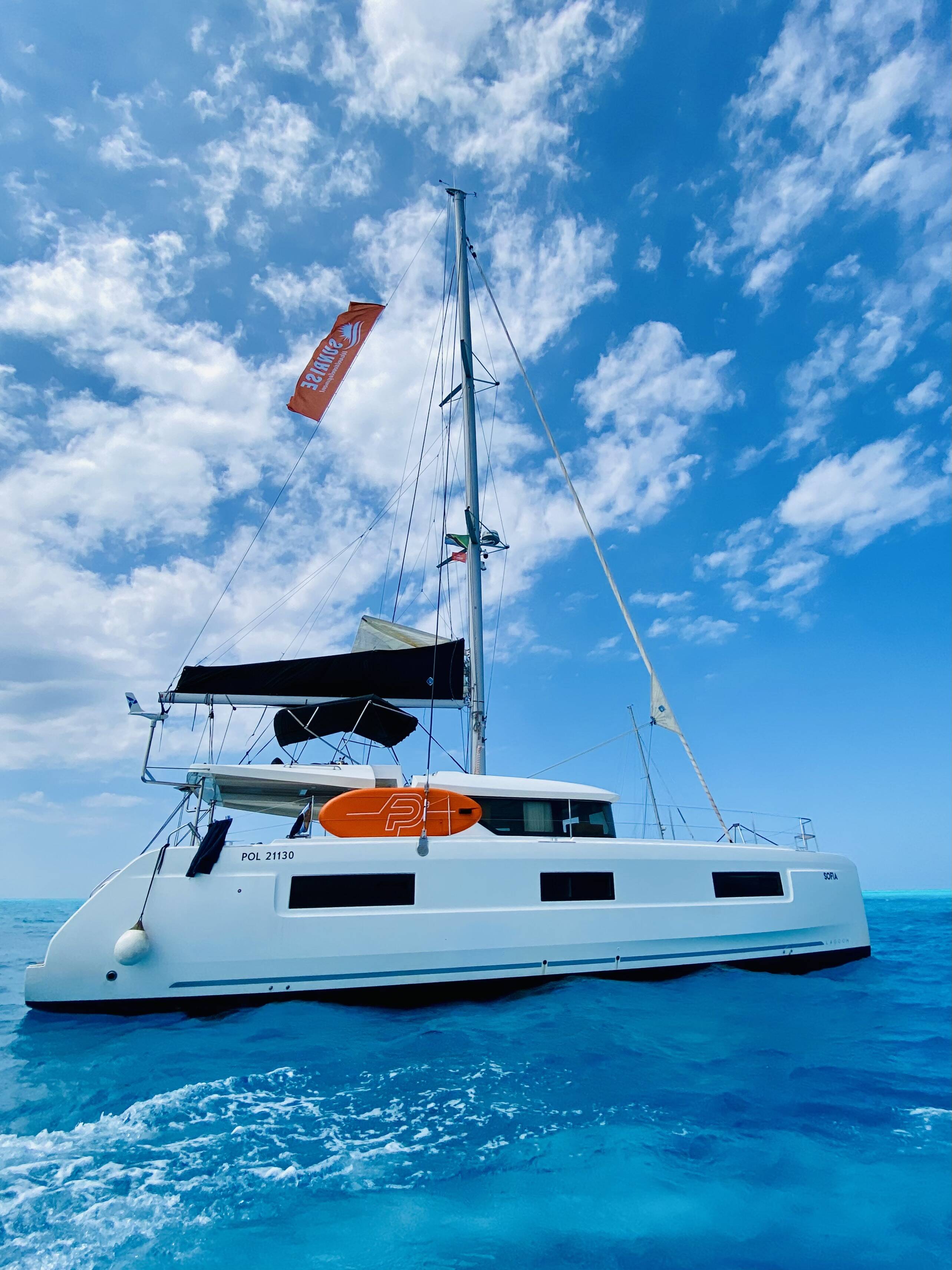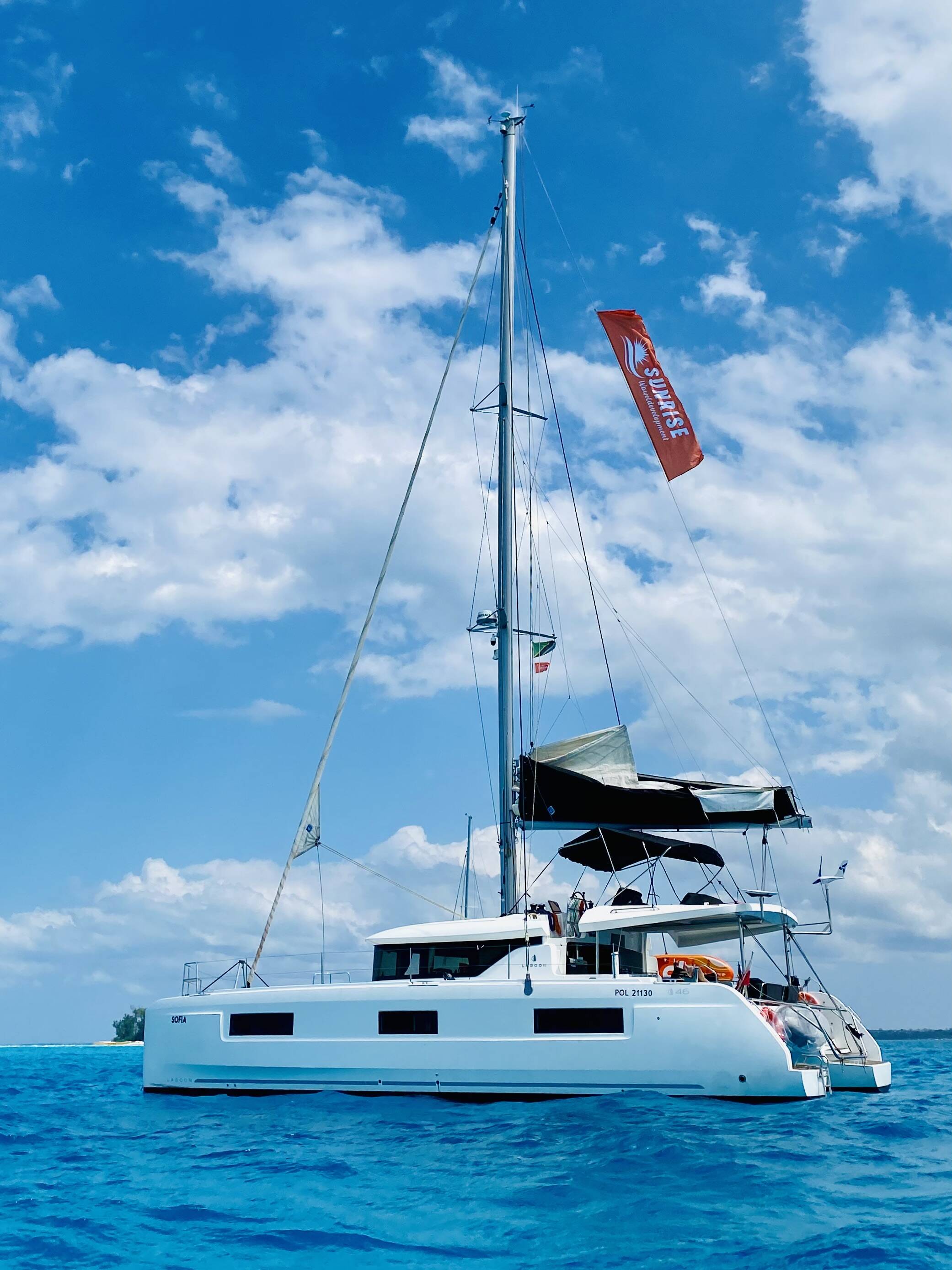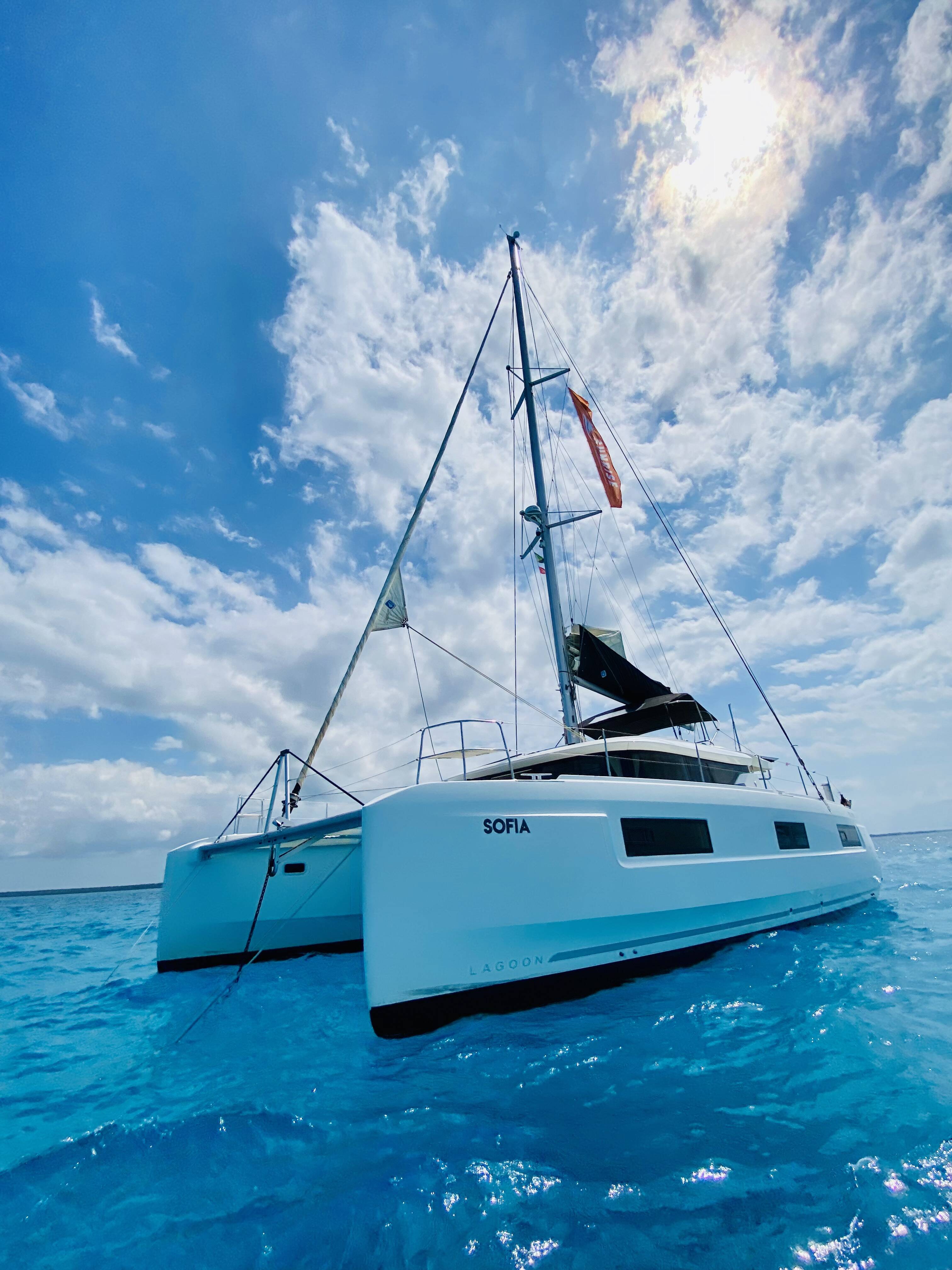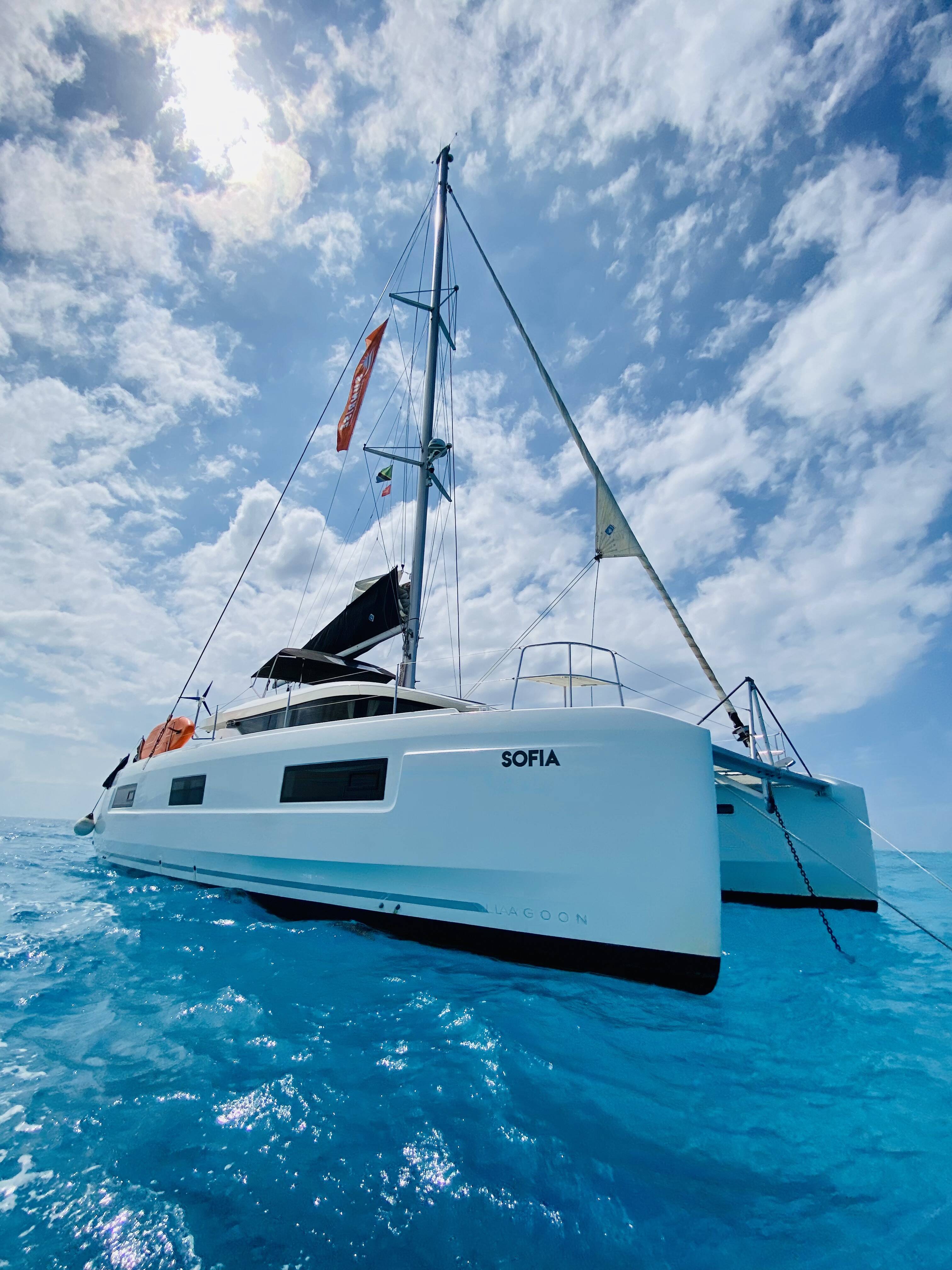 Diese Yacht Lagoon 46 (Katamaran - Baujahr 2019) liegt in der Zanzibar, Azam Marine, Zanzibar, Tanzania. Sie verfügt über 3 + 1 Kabinen, bietet Ihnen Platz für 7 Personen und hat 4 WC.