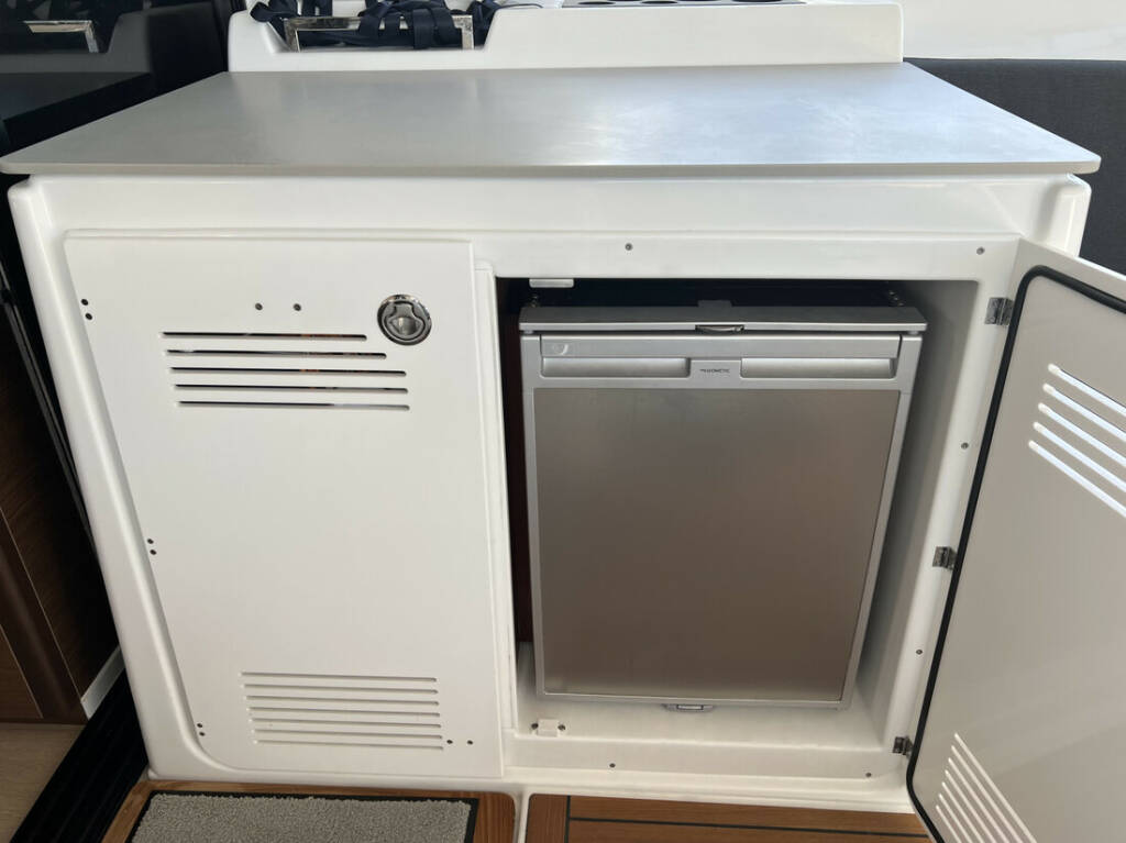 Zusätzliche Skipperkabinen im Bug, Edelstahl Dinghy Lift System, elektrische Manöverwinsch, Steuermannsitz mit Polster, Rumpffenster in den Achterkabinen mit Verdunkelung, Bugkörbe mit Sitzflächen, Fusion Radio mir 6 Lautsprechern im Salon - Cockpit - Flybridge, Indirekte Beleuchtung im Cockpit - Heckbereich - Flybridge und in den Kabinen, USB Steckdosen in den Kabinen und im Salon, zusätzlicher Kühlschrank 90l, zusätzlicher Gefrierschrank 65l, Polster für hinteres Cockpit, Polster für vorderes Cockpit, Sonnendeck Polster mit Rückenlehne auf der Flybridge, zusätzliche Schwimmleiter mit Warm und Kaltwasser Dusche, Außenborder mit 10 PS Halterung am Heckkorb, hinteres Cockpit und Heckstufen in Teak, großer klappbarer Teak Cockpittisch mit Cockpitbank (verschiebbar), 12V Kühlschrank im Cockpit 80l, Bimini über dem Steuerstand, Ankerwinsch mit Kettenzähler und Fernbedienung am Steuerstand, stärkerer Motor 57 PS, Inverter 12V/220V - 2000VA, flexible Solarpanele mit Edelstahlträger auf dem hinteren Aufbaudach (4x 115W), Doppelkoje im Salon mit Polster, Mikrowelle 220V mit Grillfunktion, Lattenroste unter in allen Kabinen, 16 Zoll Kartenplotter, 6 x 140 Ah AGM-Servicebatterien, zusätzliches Handfunkgerät