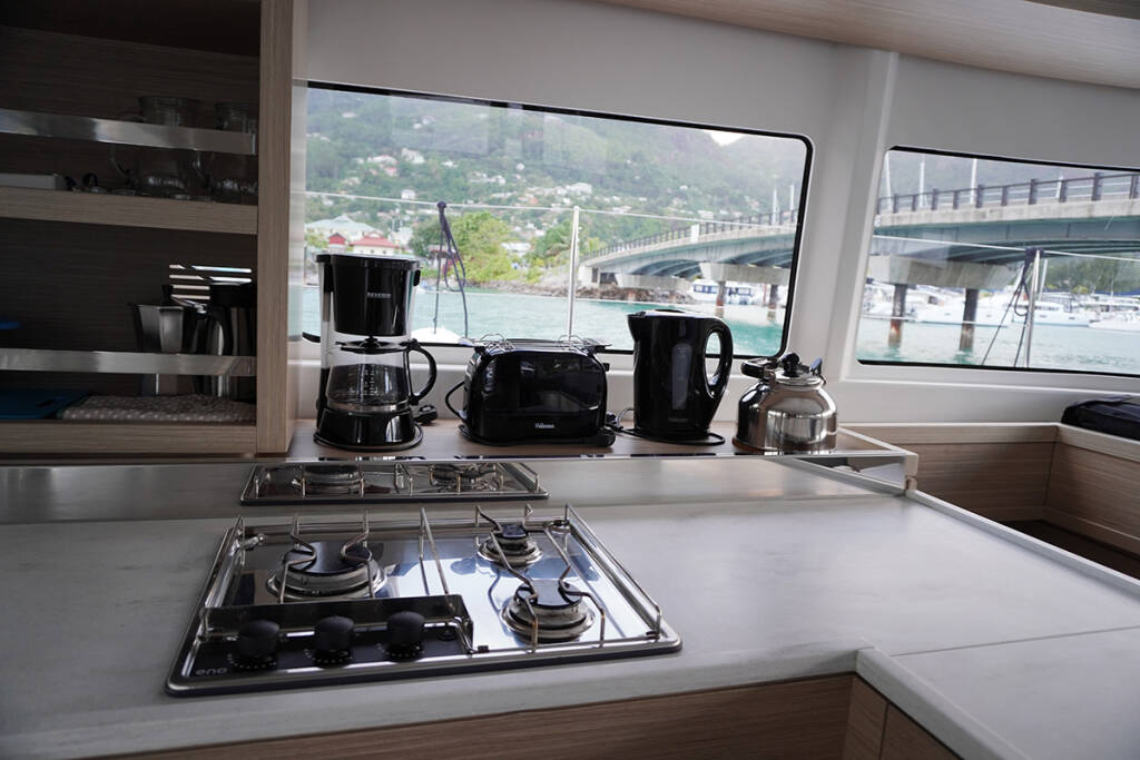 Diese Yacht Lagoon 46 (Katamaran - Baujahr 2023) liegt in der Seychelles, Eden Island Marina, Mahé, Seychellen. Sie verfügt über 4 + 2 Kabinen, bietet Ihnen Platz für 10 Personen und hat 4 WC.