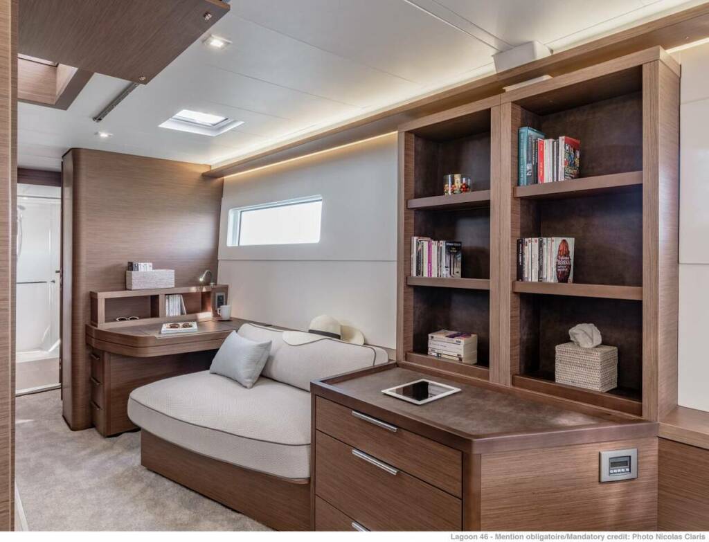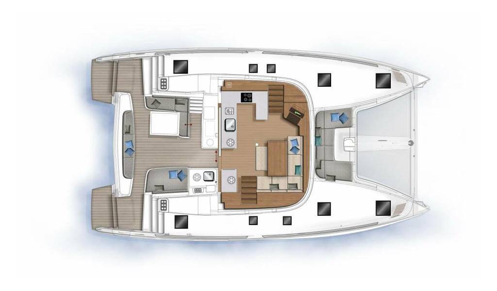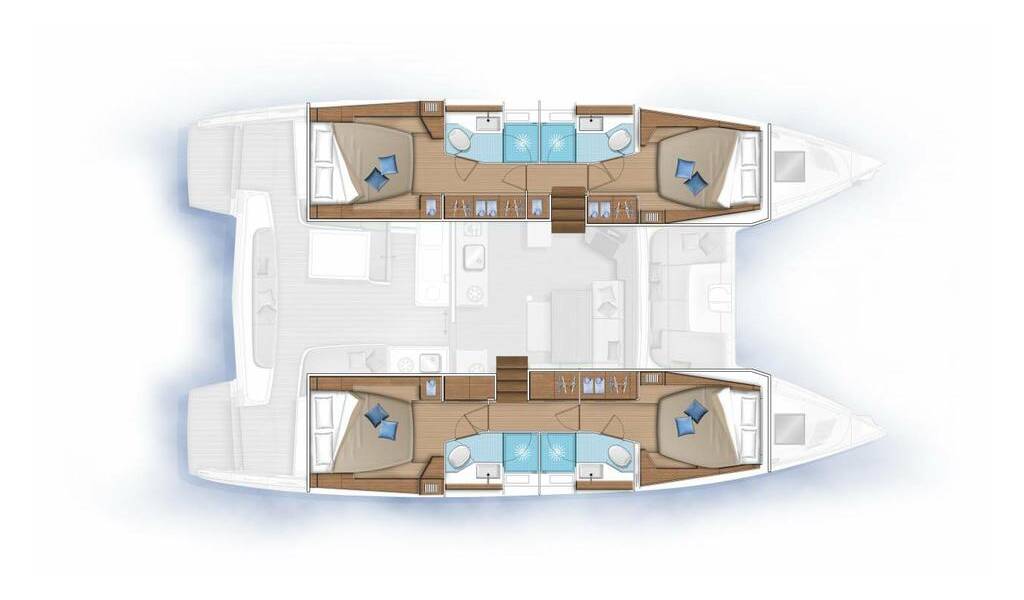 Diese Yacht Lagoon 46 (Katamaran - Baujahr 2023) liegt in der Guadeloupe, La Marina Bas du Fort, Guadeloupe, Karibik. Sie verfügt über 4 + 2 Kabinen, bietet Ihnen Platz für 12 Personen und hat 4 WC.