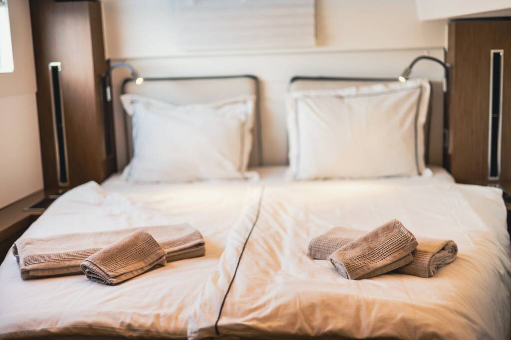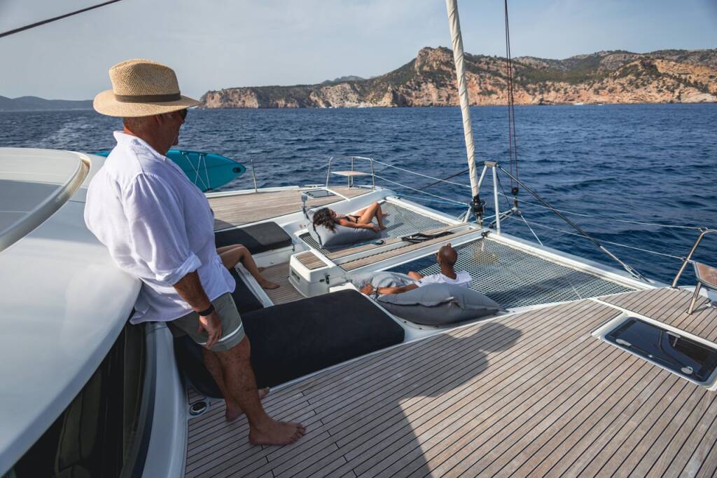 Diese Yacht Lagoon 46 (Katamaran - Baujahr 2020) liegt in der Palma de Mallorca, Port Andratx, Balearische Inseln, Spanien. Sie verfügt über 4 + 1 Kabinen, bietet Ihnen Platz für 8 + 1 Personen und hat 4 WC.