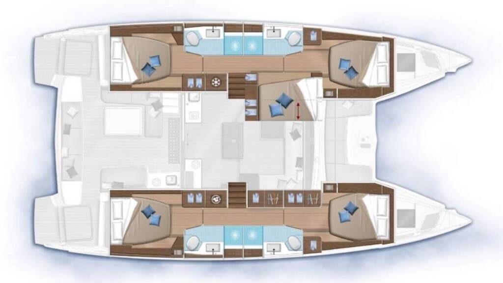 Diese Yacht Lagoon 50 (Katamaran - Baujahr 2020) liegt in der Kotor, Port of Kotor, Montenegro, Montenegro . Sie verfügt über 5 + 1 Kabinen, bietet Ihnen Platz für 11 Personen und hat 4 WC.