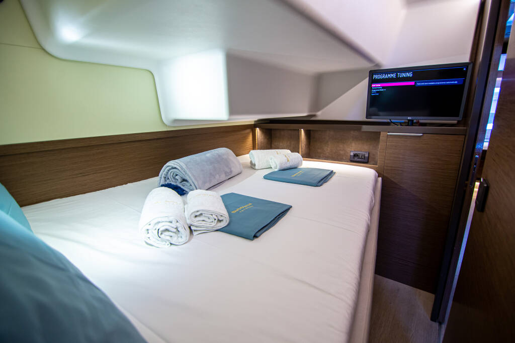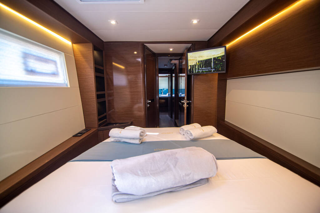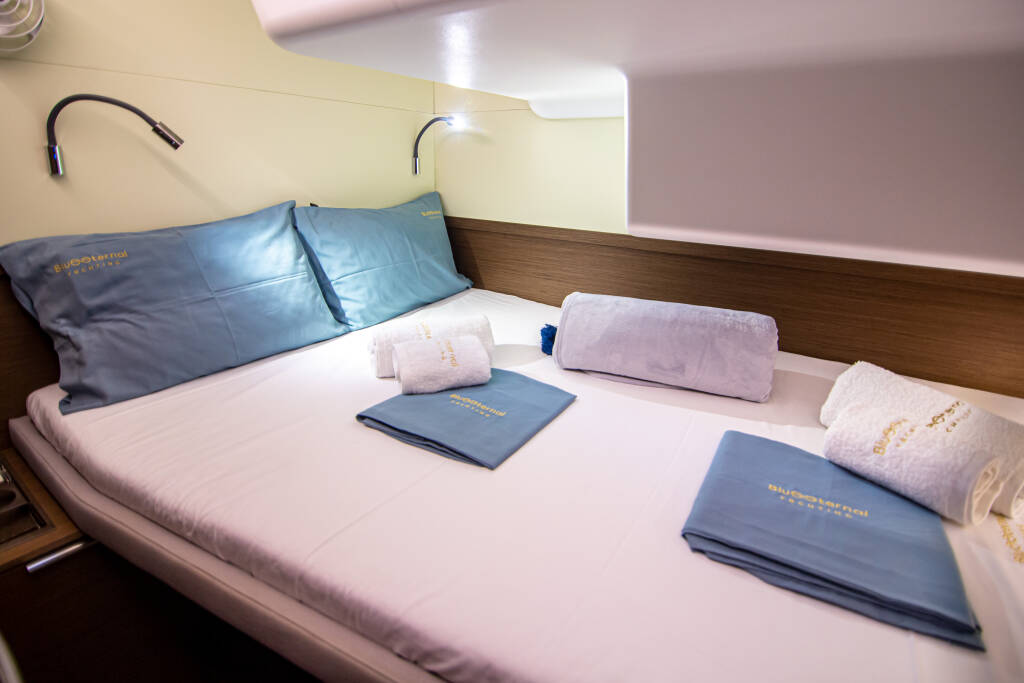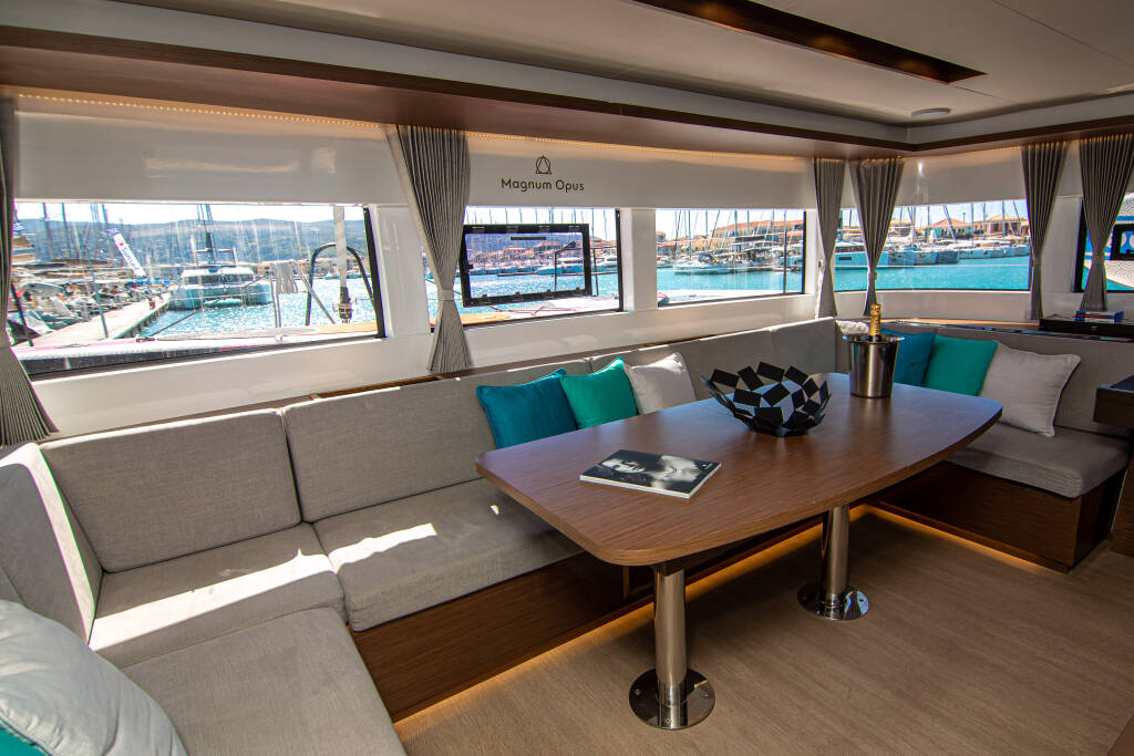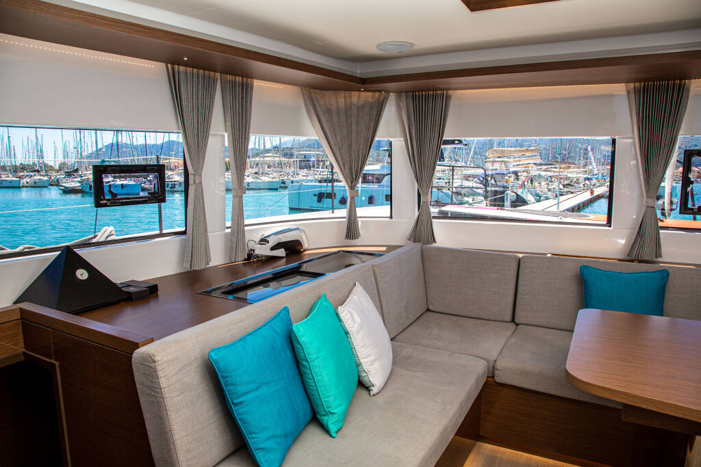 Diese Yacht Lagoon 50 (Katamaran - Baujahr 2022) liegt in der Preveza Main Port, Ionisches Meer, Griechenland . Sie verfügt über 6 + 2 Kabinen, bietet Ihnen Platz für 14 Personen und hat 4 + 2 WC.