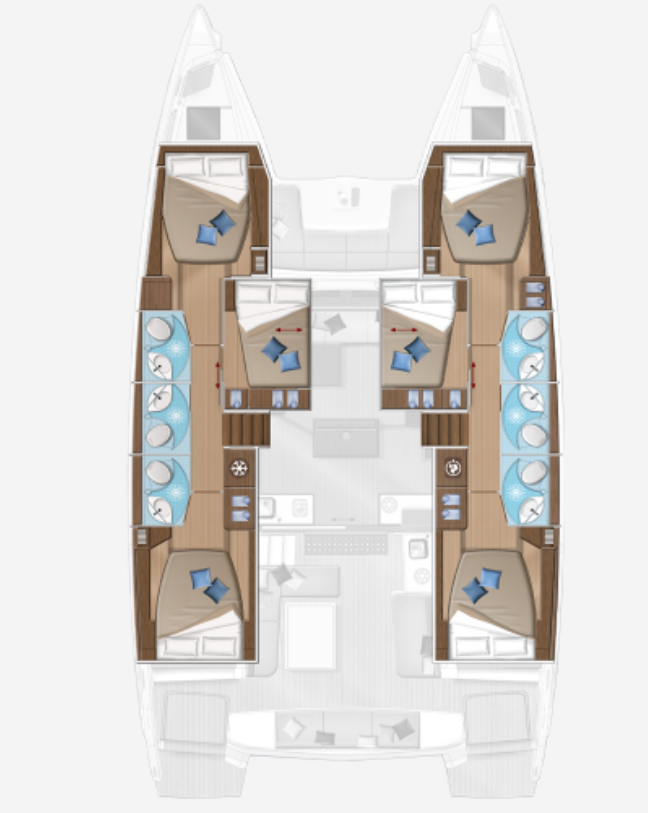 Diese Yacht Lagoon 50 (Katamaran - Baujahr 2022) liegt in der Athens, Alimos marina, Athens area/Saronic/Peloponese, Griechenland . Sie verfügt über 6 Kabinen, bietet Ihnen Platz für 11 Personen und hat 4 WC.