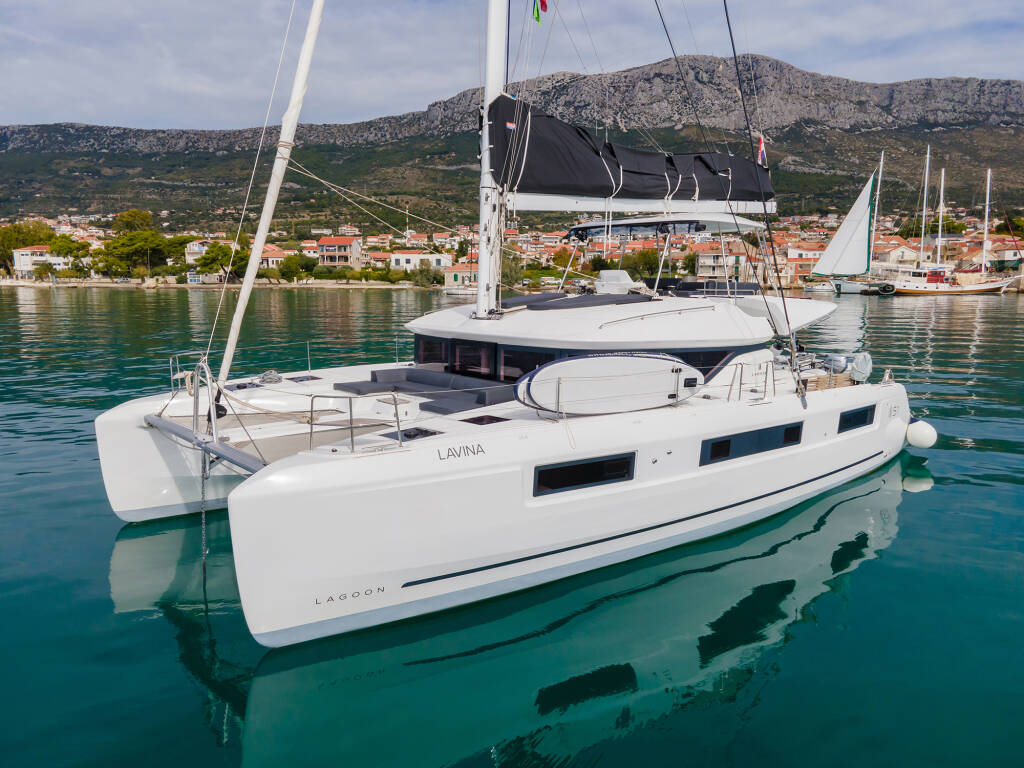 Diese Yacht Lagoon 51 (Katamaran - Baujahr 2024) liegt in der Marina Kastela, Split & Umgebung, Kroatien. Sie verfügt über 6 + 1 Kabinen, bietet Ihnen Platz für 12 Personen und hat 4 WC.