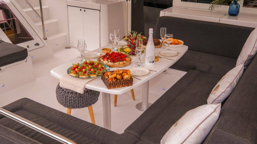 Diese Yacht Lagoon 52 F (Katamaran - Baujahr 2020) liegt in der Fethiye, Ece Saray Marina Resort, Aegean, Türkei. Sie verfügt über 4 + 1 Kabinen, bietet Ihnen Platz für 8 Personen und hat 4 + 1 WC.