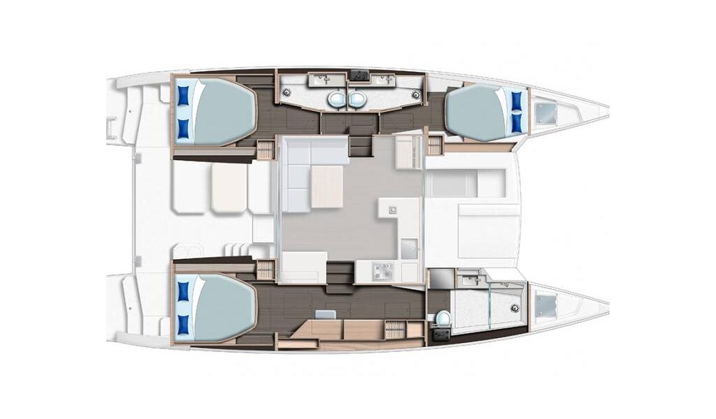 Diese Yacht Leopard 42 (Katamaran - Baujahr 2024) liegt in der Bahamas, Abacos, Boat Harbour Marina, Abaco Islands, Bahamas, Bahamas. Sie verfügt über 3 Kabinen, bietet Ihnen Platz für 6 Personen und hat 3 WC.
