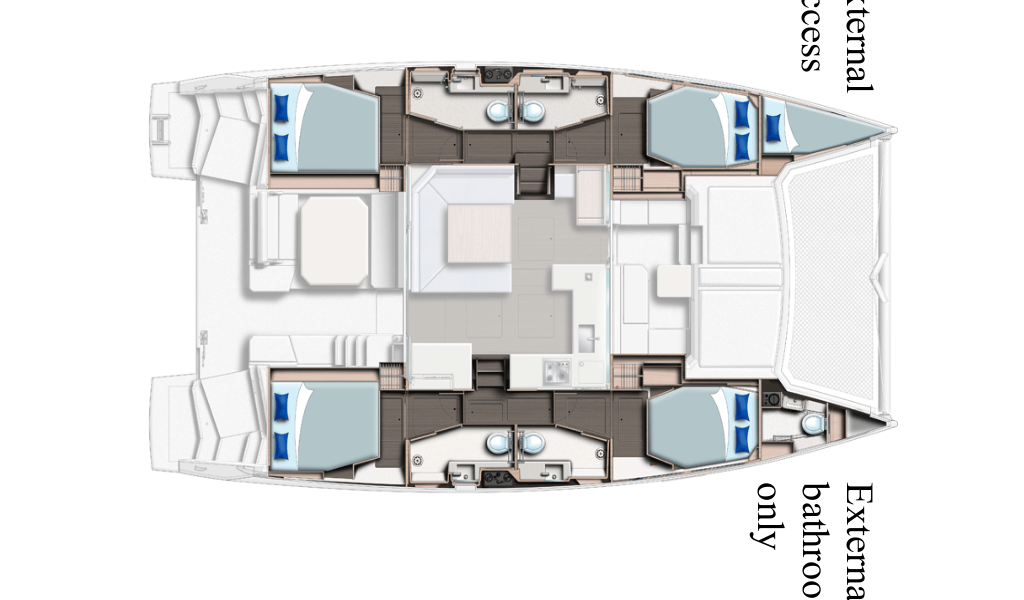Diese Yacht Leopard 45 (Katamaran - Baujahr 2022) liegt in der Sardinien, Cannigione, Sardinien, Italien. Sie verfügt über 4 + 1 Kabinen, bietet Ihnen Platz für 8 + 2 + 1 Personen und hat 4 + 1 WC.