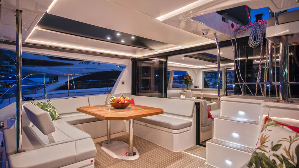Diese Yacht Leopard 45 (Katamaran - Baujahr 2022) liegt in der Toulon, Vieille Darse, Provence-Alpes-Côte d'Azur, Frankreich. Sie verfügt über 4 Kabinen, bietet Ihnen Platz für 8 Personen und hat 4 WC.
