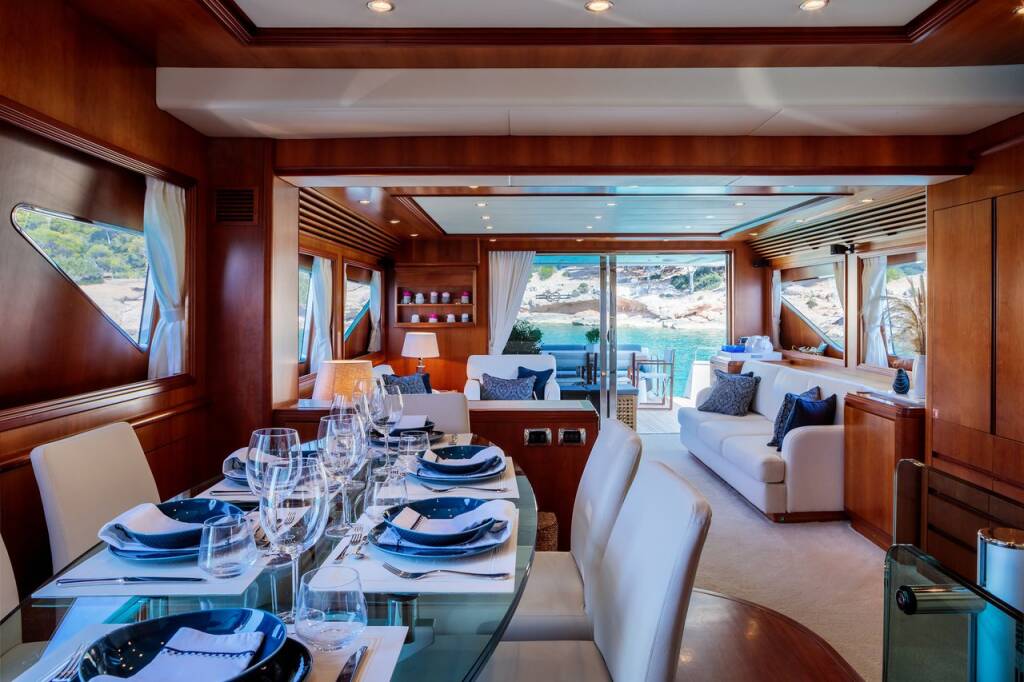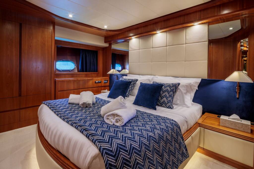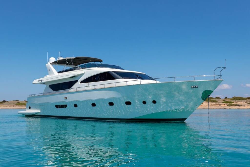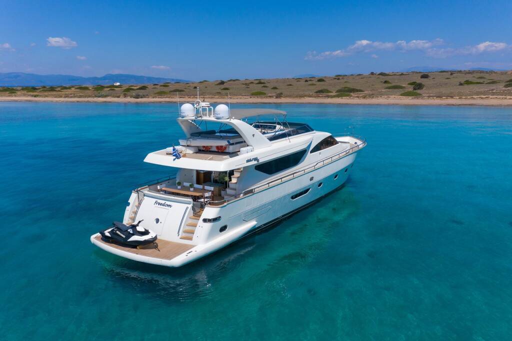 FREEDOM ist eine atemberaubende 23,8 m lange Motoryacht, die von der renommierten italienischen Werft Spertini Alalunga gebaut wurde. Die Yacht ist ein schwebender Himmel. Im Inneren bieten vier geräumige Kabinen im Unterdeck bequem Platz für 10 Gäste. Die erfahrene, freundliche und engagierte 4-köpfige Crew heißt Sie an Bord willkommen und sorgt für ein entspanntes Luxusyacht-Erlebnis. Freiheit erfüllt und übertrifft internationale Standards. Diese Luxusyacht wird selbst den anspruchsvollsten Geschmack befriedigen. Sie bietet viel Platz im Freien und eine große Auswahl an Wasserspielzeugen, die jeden an Bord unterhalten werden.