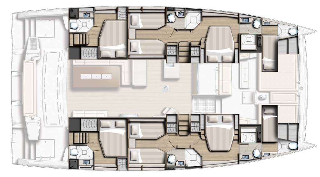 ● Specific to French Polynesia: on our Bali 5.4s, the 2 mid-ship cabin can be changed from double to twin bed (on request before the cruise)