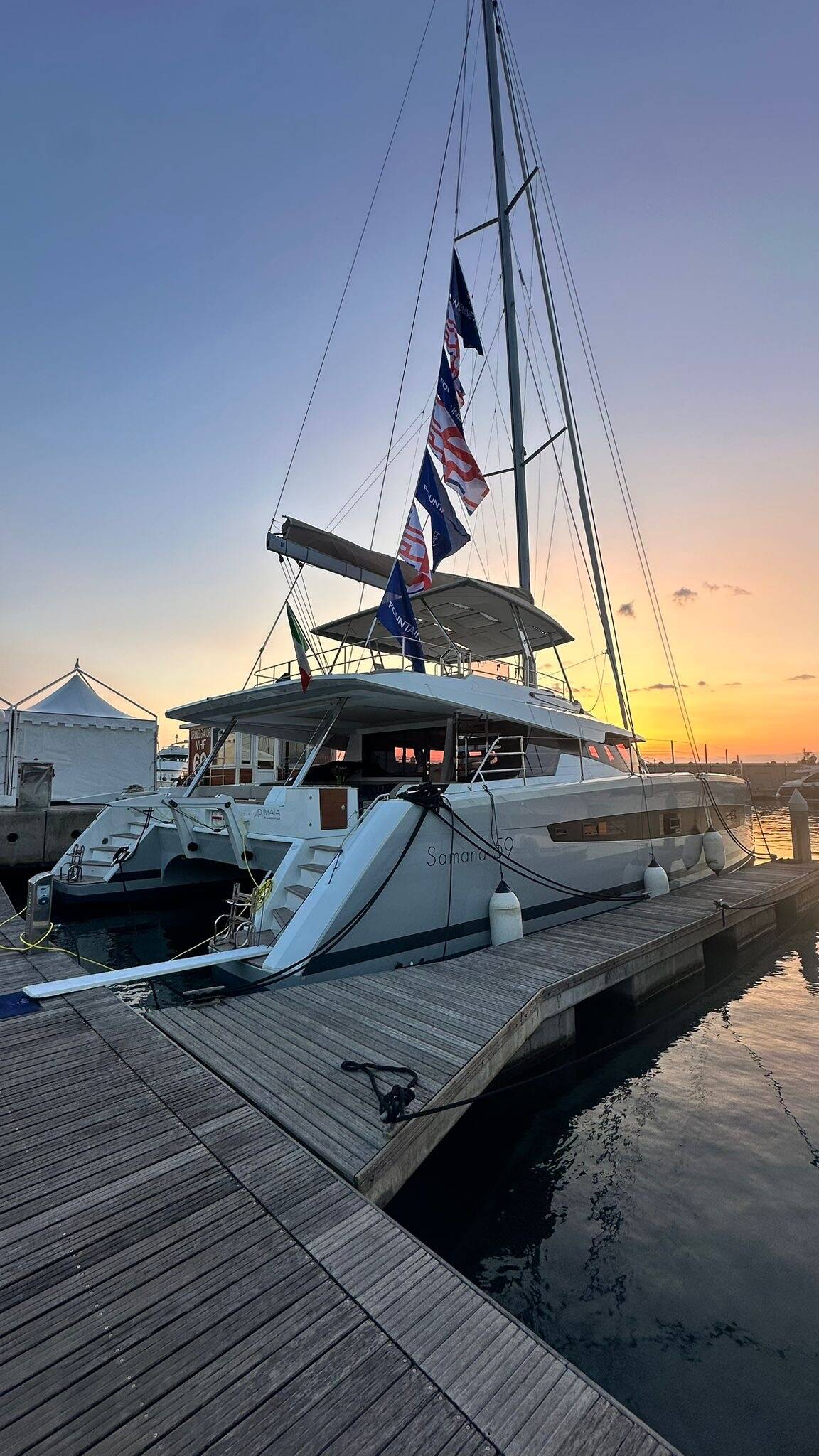 Diese Yacht Fountaine Pajot Samana 59 (Luxus Yachtcharter - Baujahr 2025) liegt in der Marina di Procida, Campania, Italien. Sie verfügt über 6 + 2 Kabinen, bietet Ihnen Platz für 12 + 3 Personen und hat 6 + 2 WC.
