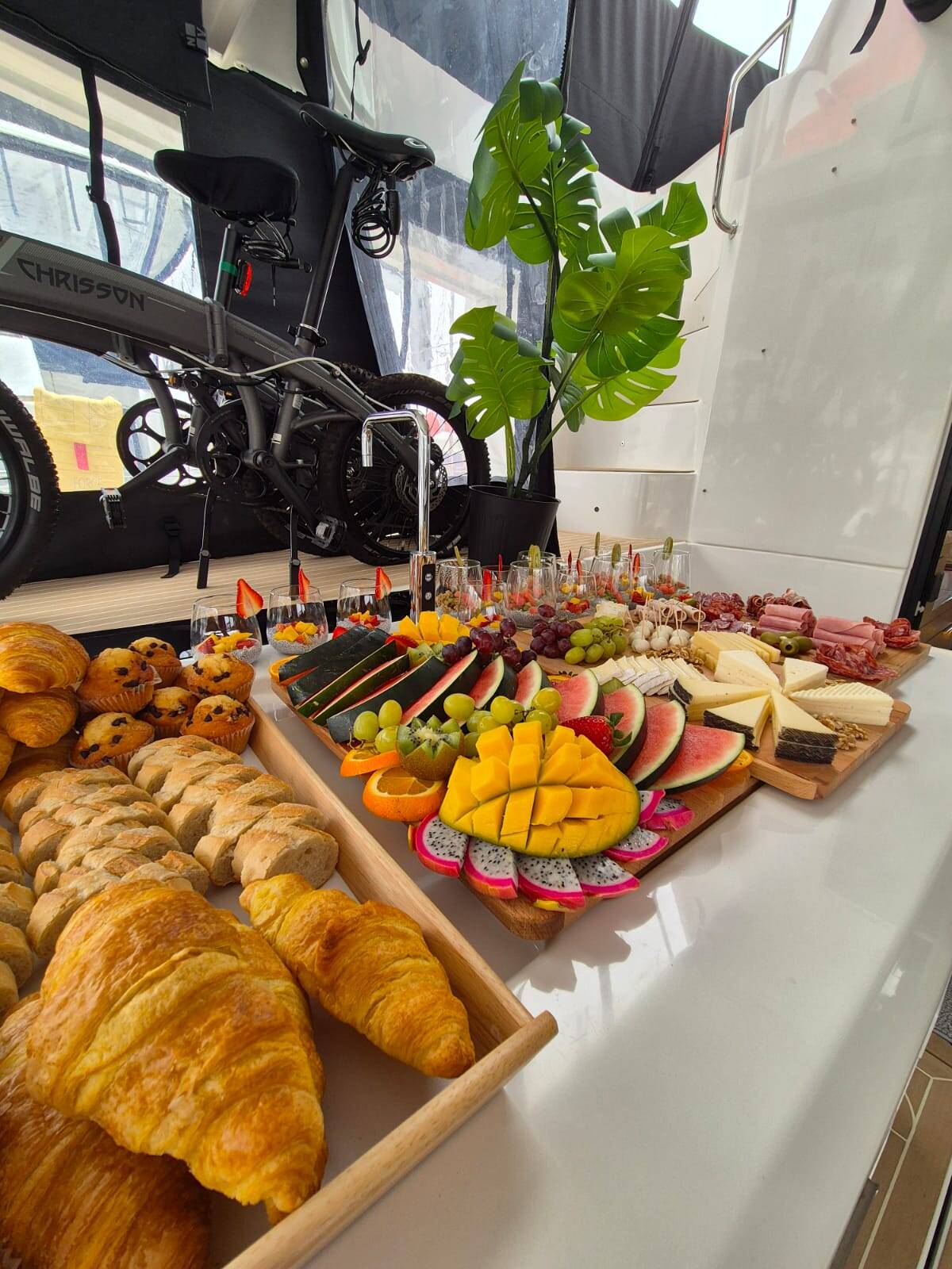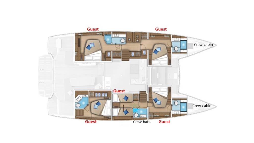 • 2 Crewmitglieder (Kapitän & Stewardess), tägliche Zubereitung von 2 Mahlzeiten: Frühstück und leichtes Mittagessen – Wasserspielzeug & Ausrüstung: Beiboot: Highfield 4.20 Sportversion, Außenbordmotor: 80 PS, 2 Stand-Up-Paddle-Boards, Wakeboard, Kajak, Wasserski, Schnorchelausrüstung (10-teilig) / 13 % MwSt.