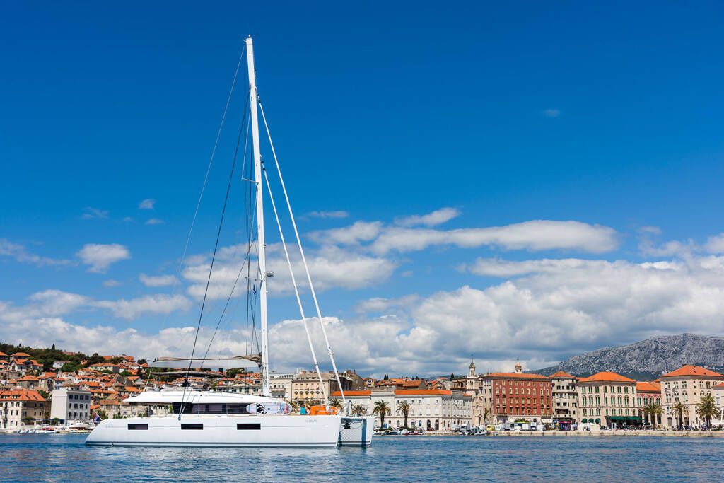 Diese Yacht Lagoon 620 (Luxus Yachtcharter - Baujahr 2017) liegt in der Split, West Coast (Zapadna obala), Split & Umgebung, Kroatien. Sie verfügt über 5 Kabinen, bietet Ihnen Platz für 10 Personen und hat 5 WC.