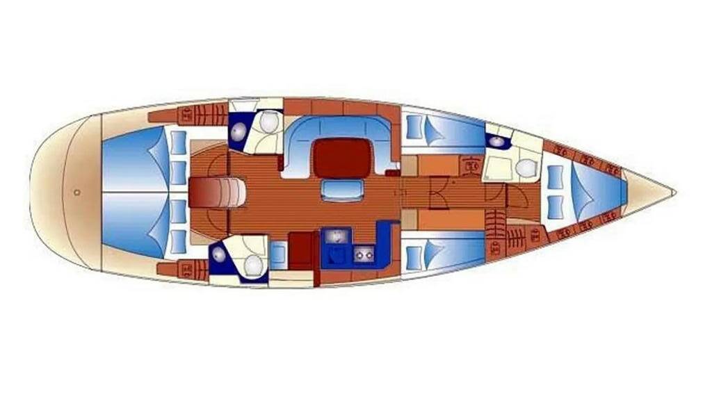Diese Yacht Bavaria 49 (Segelboot - Baujahr 2003) liegt in der Corfu, Gouvia Marina, Ionisches Meer, Griechenland . Sie verfügt über 5 Kabinen, bietet Ihnen Platz für 10 + 1 Personen und hat 3 WC.