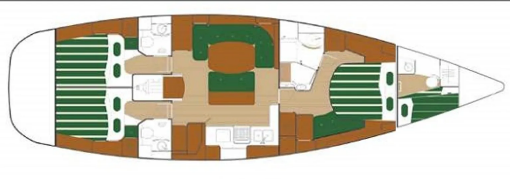 Diese Yacht Beneteau 50 (Segelboot - Baujahr 1999) liegt in der Lefkas main port, Ionisches Meer, Griechenland . Sie verfügt über 3 + 1 Kabinen, bietet Ihnen Platz für 7 Personen und hat 4 WC.