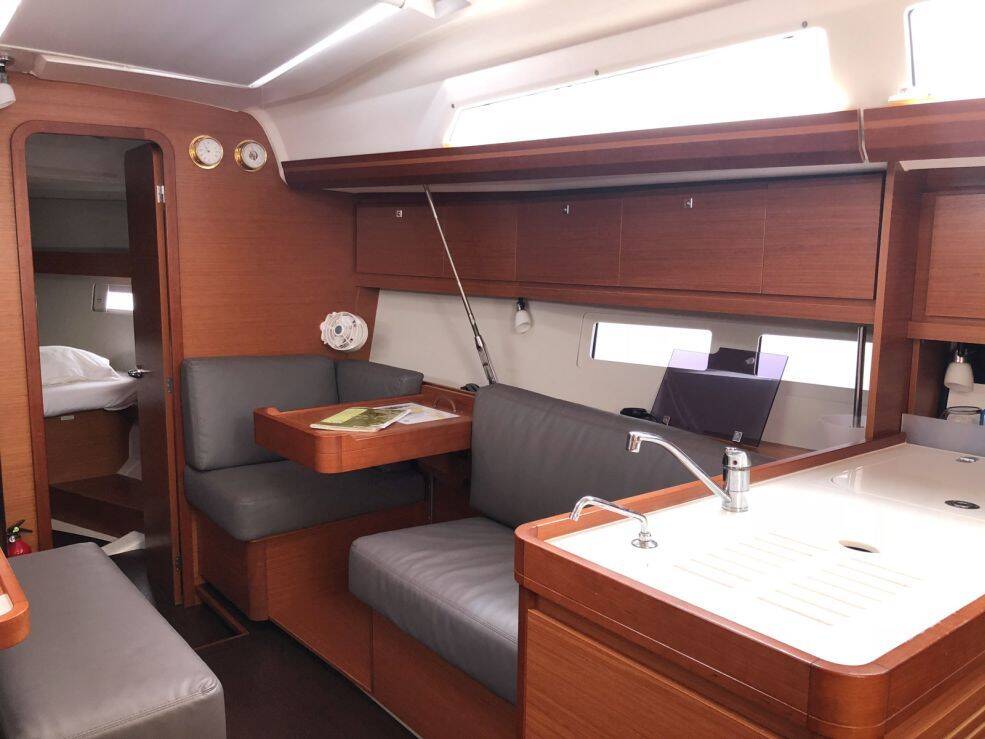 Diese Yacht Dufour 412 GL (Segelboot - Baujahr 2018) liegt in der Guadeloupe, La Marina Bas du Fort, Guadeloupe, Karibik. Sie verfügt über 3 Kabinen, bietet Ihnen Platz für 8 Personen und hat 2 WC.