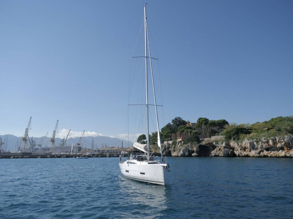 Diese Yacht Dufour 430 (Segelboot - Baujahr 2021) liegt in der Marina Poseidon, Milazzo, Sizilien, Italien. Sie verfügt über 3 Kabinen, bietet Ihnen Platz für 6 + 2 Personen und hat 3 WC.