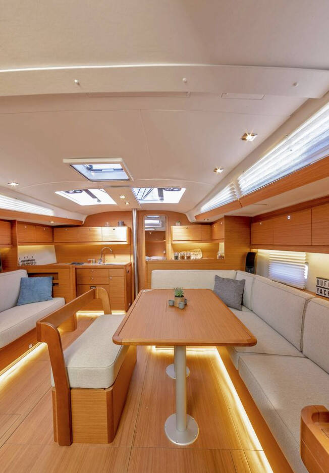 Diese Yacht Dufour 430 GL (Segelboot - Baujahr 2023) liegt in der Athens, Alimos marina, Athens area/Saronic/Peloponese, Griechenland . Sie verfügt über 4 Kabinen, bietet Ihnen Platz für 10 Personen und hat 2 WC.